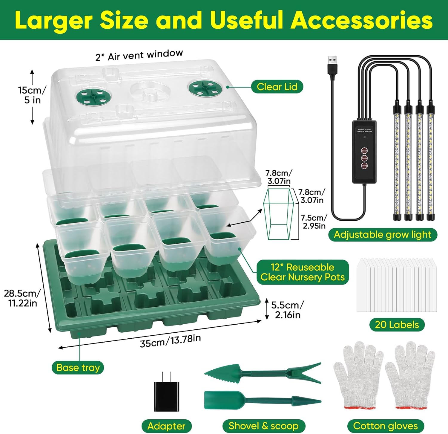 - 【Wide Applications】 The seed starter tray with grow light which is providing a great growth condition for a large variety of plants such as flowers, vegetables, fruits, tomatoes, and other plants.you can learn and get the fun of planting at home with your family.