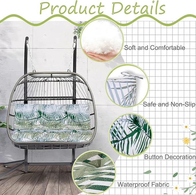 - 【Super soft swing cushion replacement】These cushions are made of high-quality cotton padding, which is very soft. The 4-inch thick outdoor seat cushion is elastic and can never feel the structure of swing chair or cane chair, which can ensure comfort, longer service life and better joint support. Fit the body, protect the tailbone, and get comfortable sitting posture