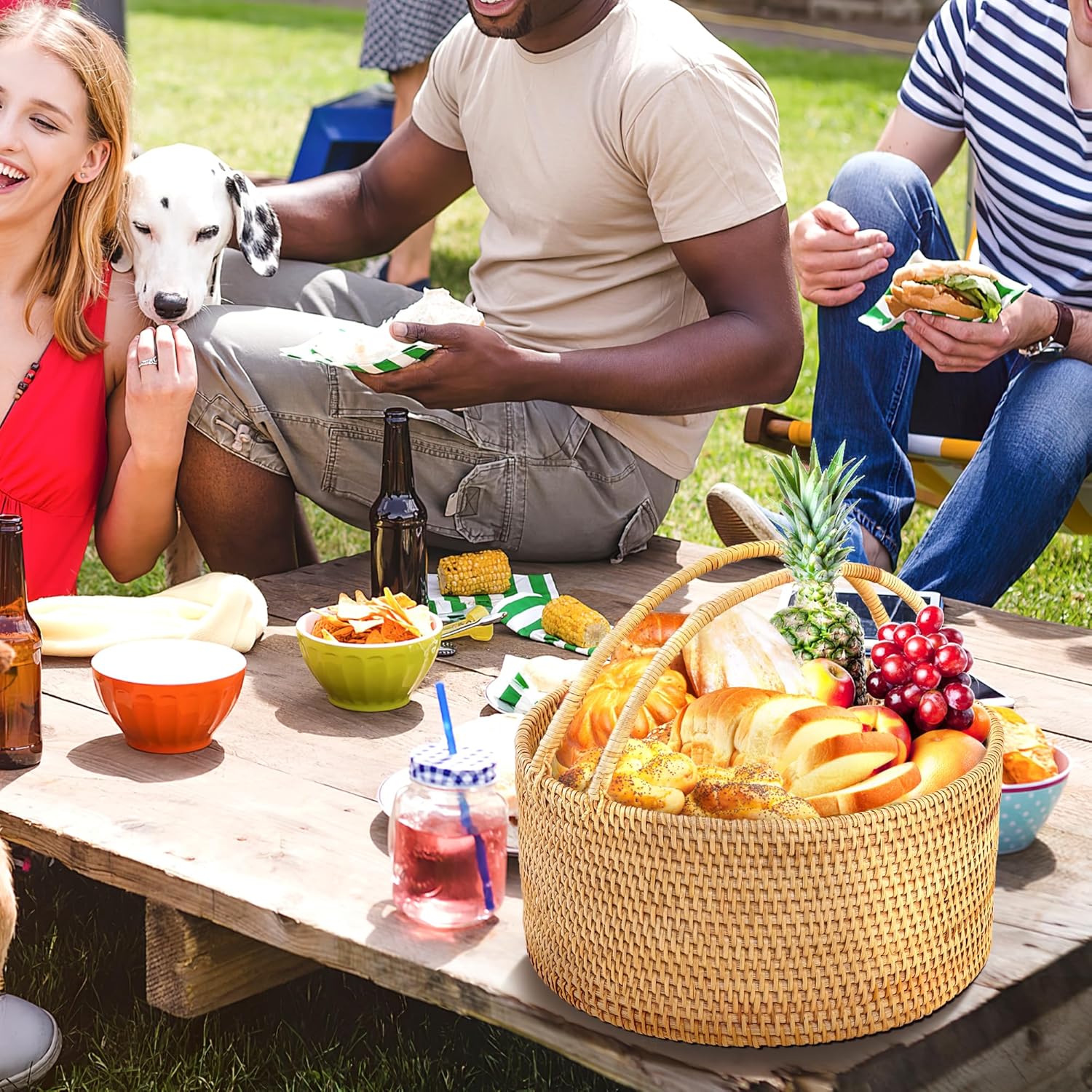 11"×11"×5" Rattan Picnic Basket with Handles, Large Round Gift Basket, Hand-Woven Basket for Fruit, Empty Gift Basket for Festival, Wedding, Camping