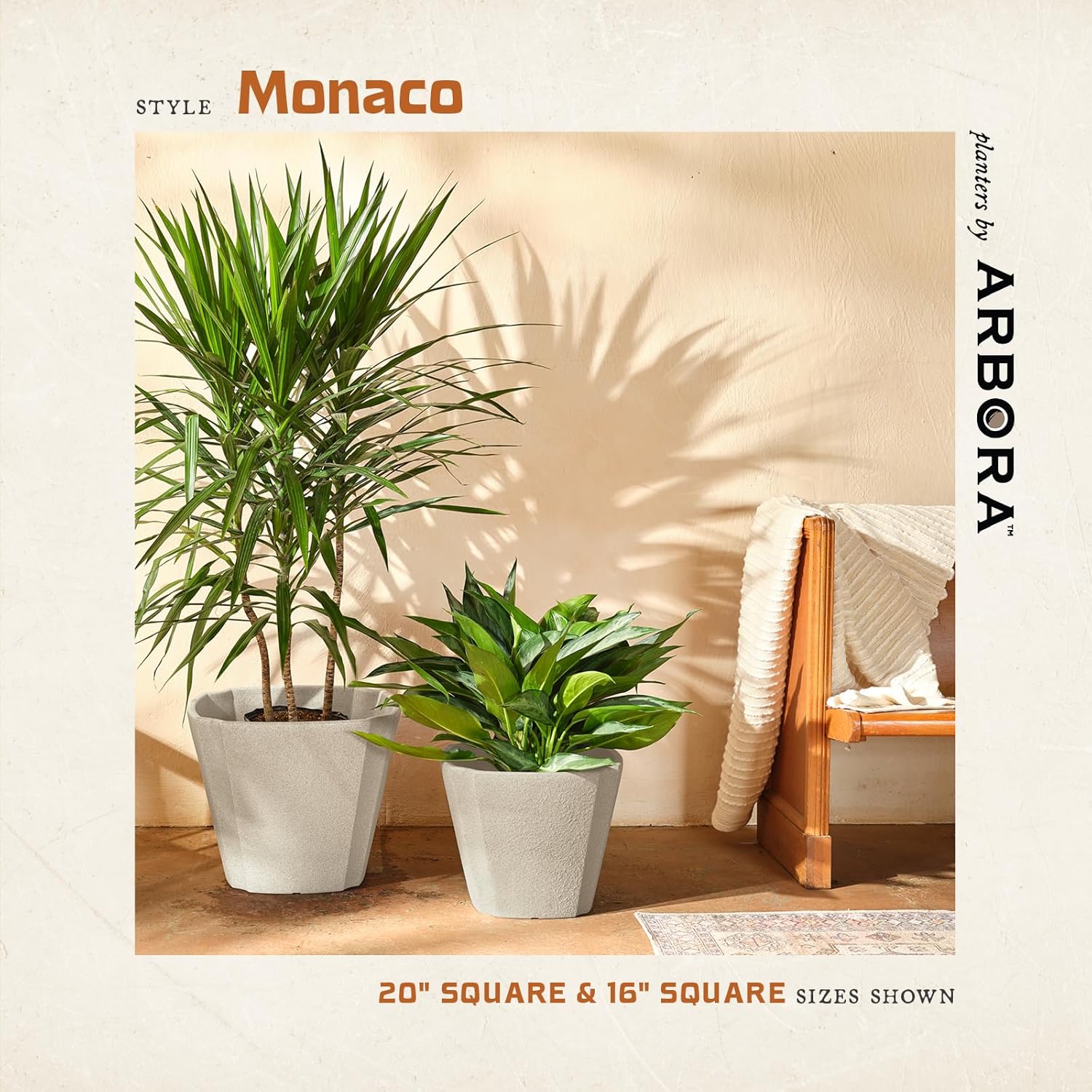 - Premium Polyresin Pots - Elevate your space with the Arbora 20" Monaco Square decorative planter, featuring a natural textured surface and classic cream finish for a touch of sophistication. Ideal for both outdoor gardens and indoor living areas.