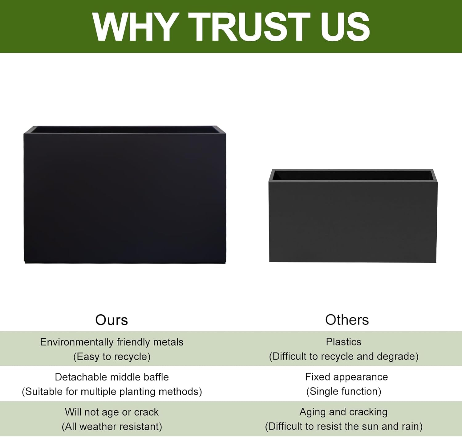 - ROBUST METAL CONSTRUCTION - Crafted from sturdy galvanized steel, this spacious planter boasts exceptional durability, ensuring it withstands outdoor elements without rusting or fading. Its weather-resistant design makes it suitable for year-round use in temperatures ranging from freezing cold to scorching heat, ideal for enhancing both indoor and outdoor settings.