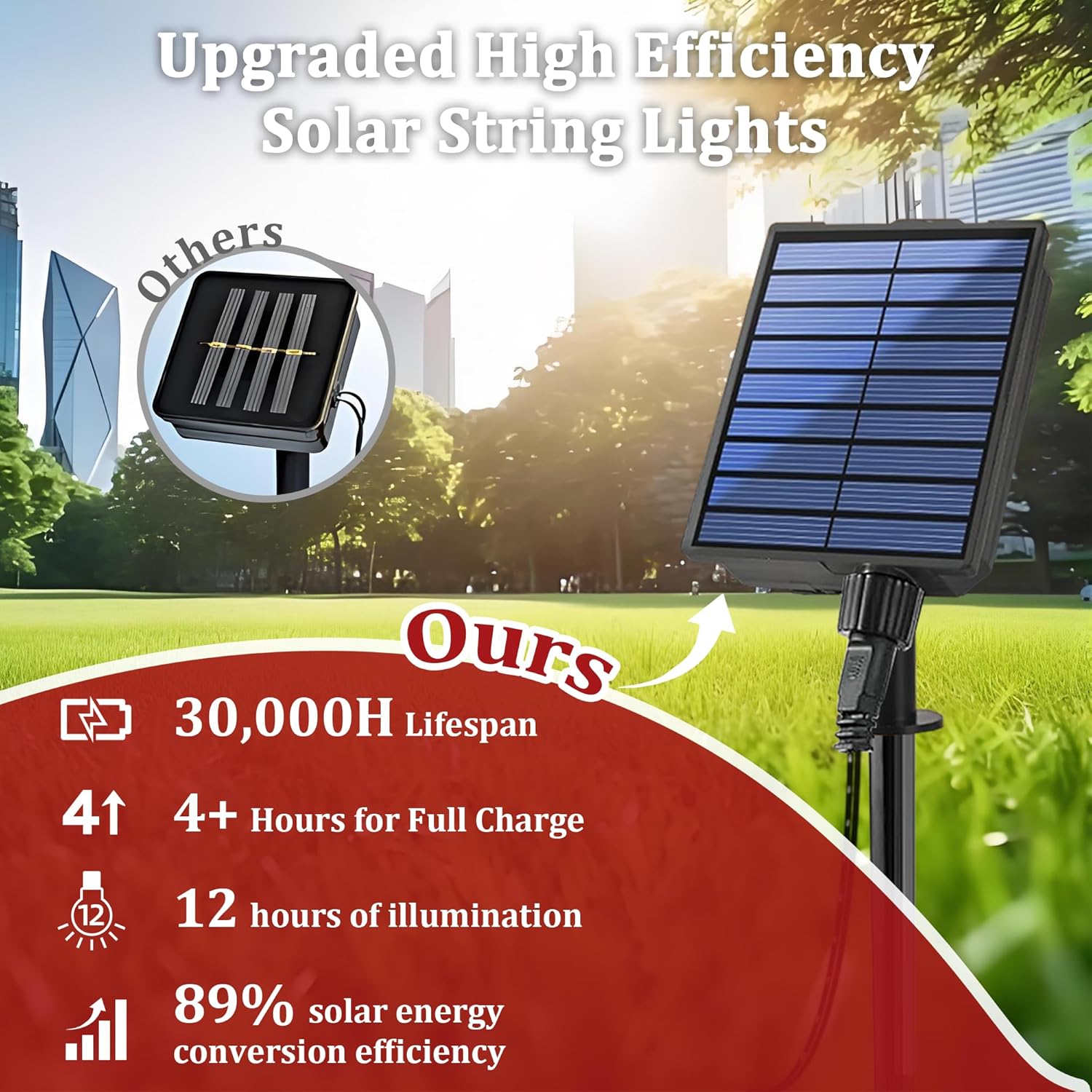 - Widely Used Solar Lights for Outdoor Christmas Decorations: This solar patio lights is a great choice for Porch, Roof, Tree, Backyard, Deck, Barbecue, Umbrella, Fence, Pergola, Bistro, Restaurant, Hotel, Commercial building, Shopping Center, Dinner, Birthday, Christmas, New Year Party and more.
