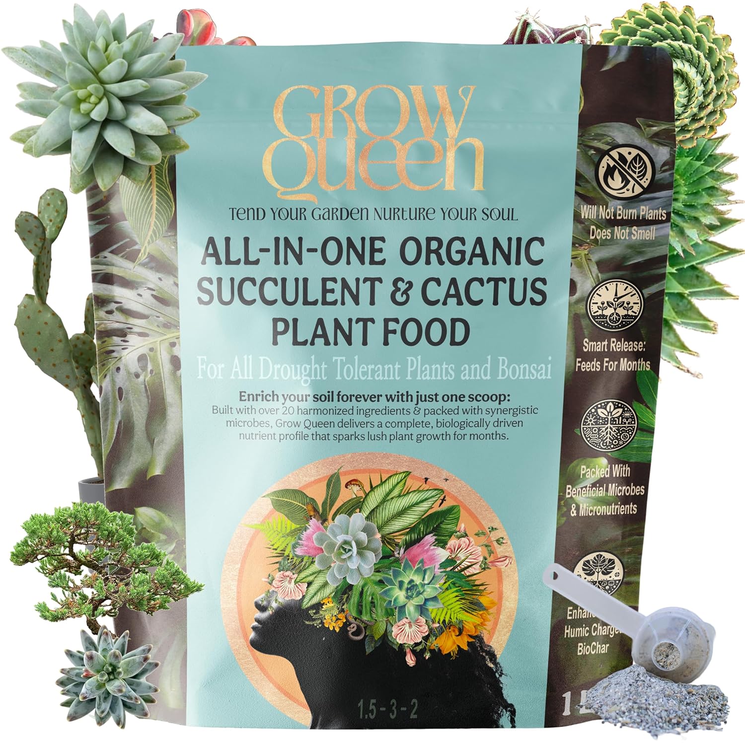 - FORMULA DESIGNED FOR ALL SUCCULENTS: With a balanced full spectrum nutrient profile, this Succulent Plant Food is ideal for all plant types but specifically formulated for succulents, bonsai, cacti and as a Christmas cactus fertilizer. It's an excellent all-purpose option. Wherever Grow Queen is applied, plants thrive, including Aloe Vera, Echeveria, Jade Plant, Zebra Plant, Pincushion Cactus, Panda Plant, String of Pearls, Crown of Thorns, Burro's Tail, Christmas Cactus, Snake Plant, & more