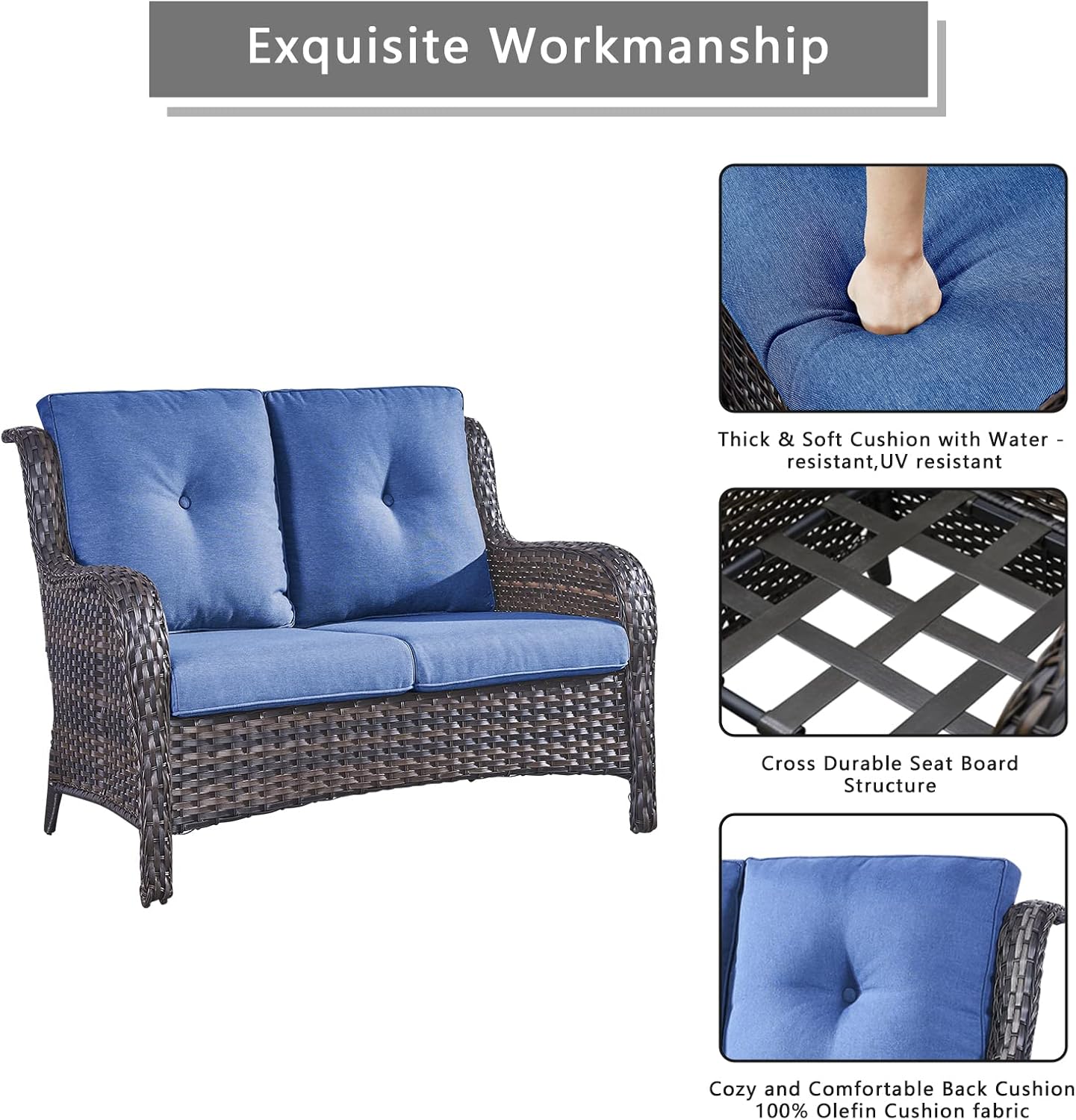 - 【Comfort Cushions & Deep Seating】This patio wicker swivel chairs and loveseat feature deep and wide seats,with 4-inch thick sponge-padded seat cushions,5-inch back cushion create the ultimate patio seating experience.