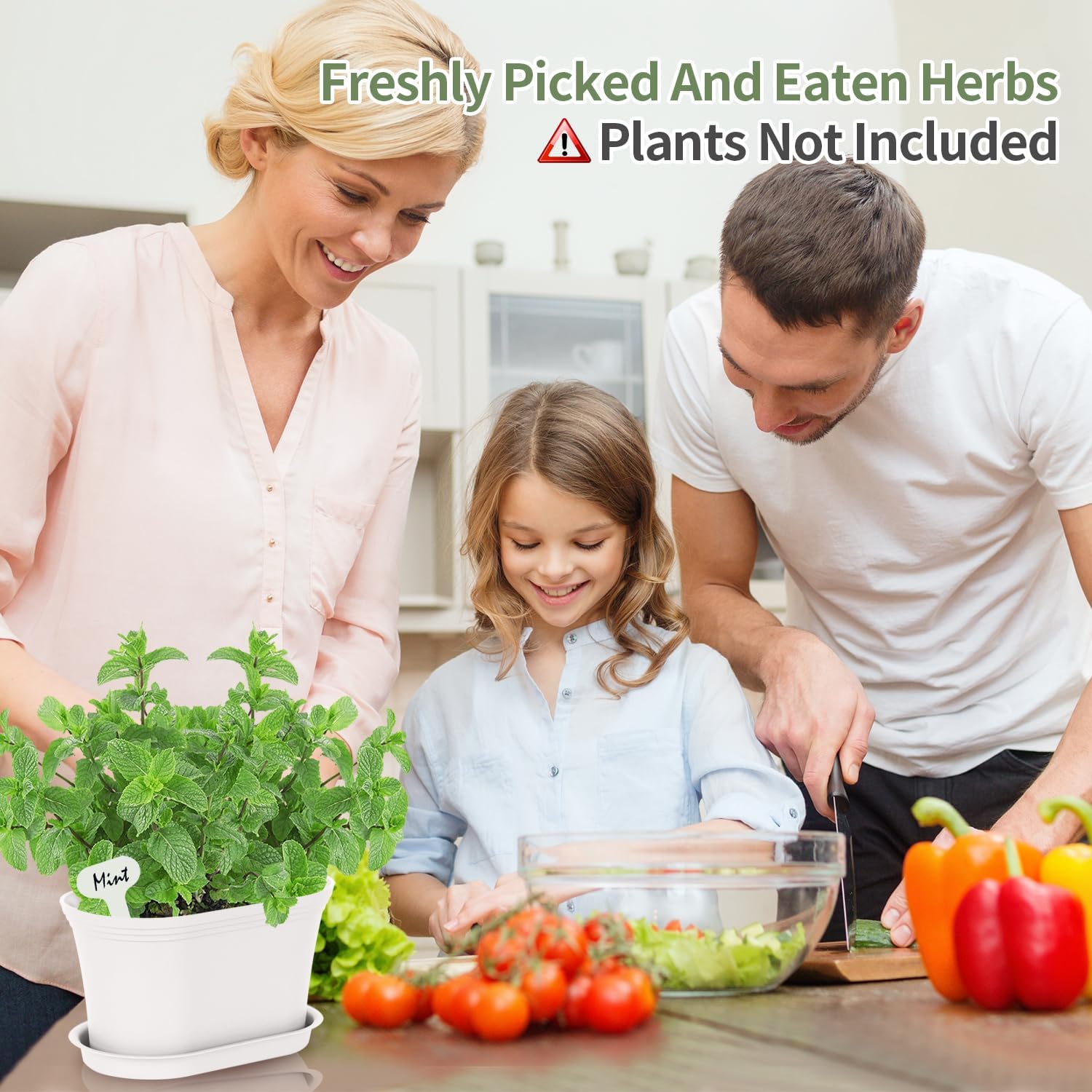 Windowsill Garden Pots, White Plastic Flower Pots with Drainage Tray for Herb, Succulents, African Violet (Pack of 6)