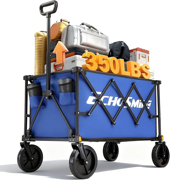 EchoSmile Collapsible Foldable Wagon Cart with 350lbs Weight Capacity, Heavy Duty Folding Utility Sport Wagon with Removeble Wheels for Camping,Grocery,Garden,Beach,Bule