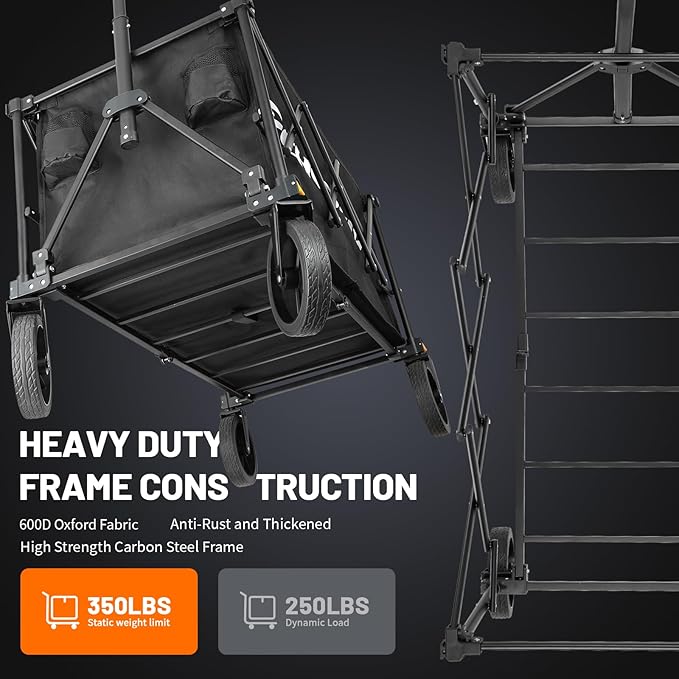 EchoSmile Collapsible Foldable Wagon Cart with 350lbs Weight Capacity, Heavy Duty Folding Utility Sport Wagon with Removeble Wheels for Camping,Grocery,Garden,Beach,Black