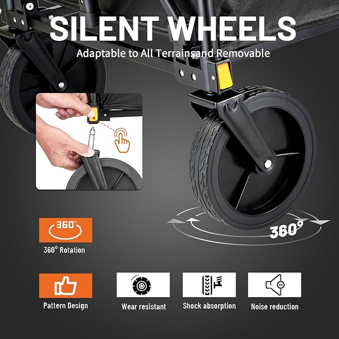 - Fast Set-Up & Fold: No assembly required for EchoSmile big collapsible wagon heavy duty. A convenient size for both storage and expanded use. Fast and easy to set up in seconds and has an attached handle to move the beach cart. This folding heavy-duty wagon can be folded compactly to store easily in a compact car, or garage, ensuring easy transport.
