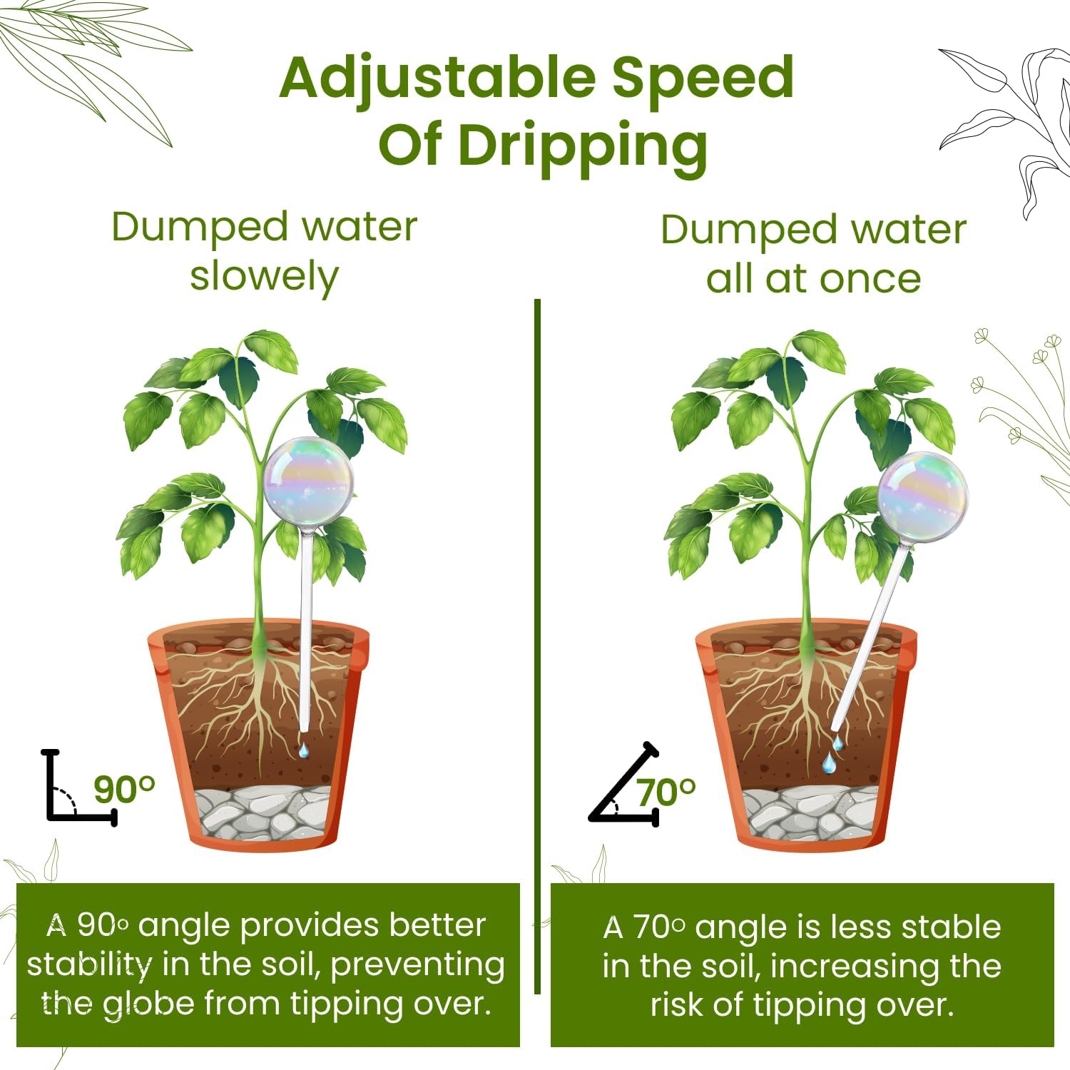 - Vacation-Proof Hydration: Ensure your plants stay lush and vibrant even when you're away with our Glass Globe Watering System, designed for effortless watering during vacations.