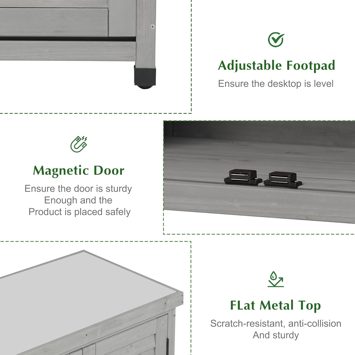 Outdoor Storage Cabinet & Potting Bench Table with Metal Top, Wooden Patio Furniture, Garden Workstation (Accent Grey, 36x31x17in)