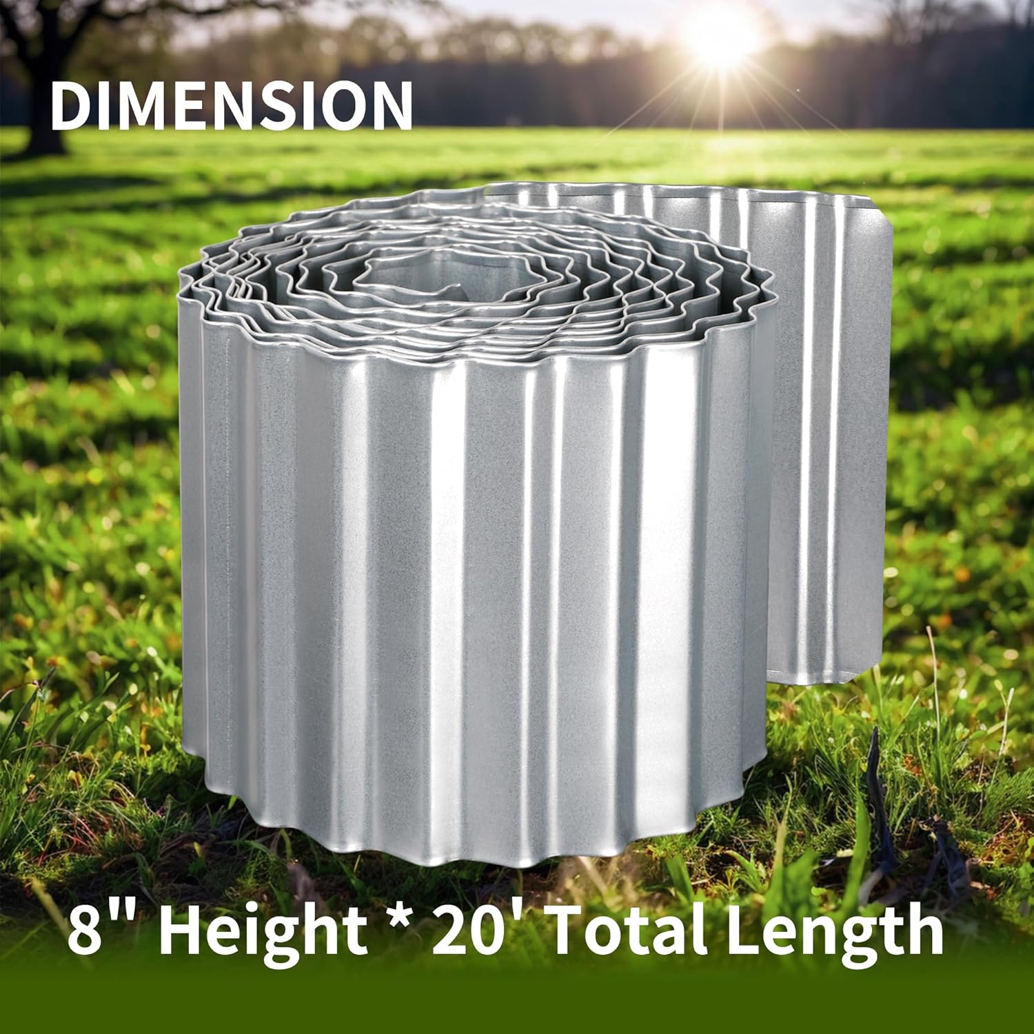Worth Garden Wide-Corrugated Galvanized Steel Landscape Lawn Edging - 8" x 20' Flexible Sturdy Garden Long Strips of Metal Edging for Raised Flower Bed Tree Surrounds