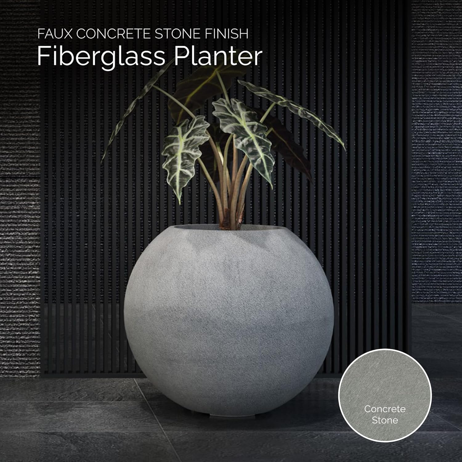 Orbo Large Planter – Fiberglass Indoor/Outdoor and Weather-Resistant Globe Planter (Concrete Stone, 35.4" D x 31.3" H)