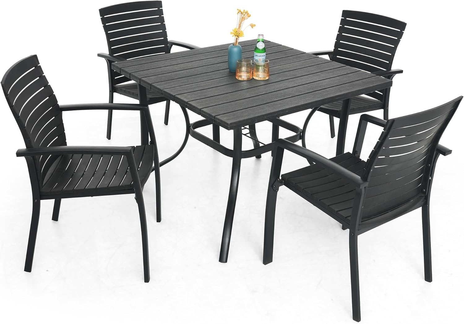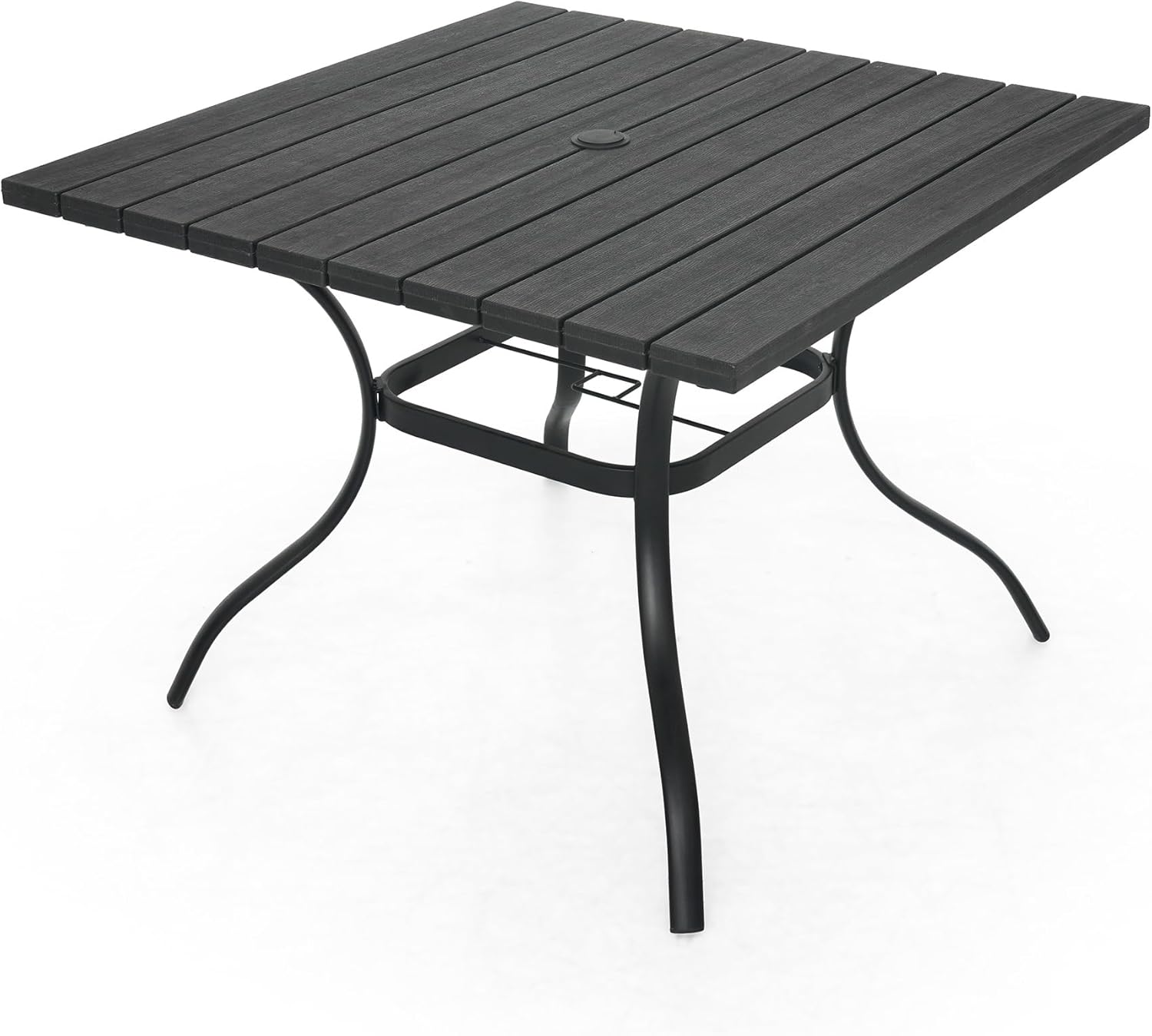 Outdoor Dining Table with 1.6" Umbrella Hole, Picnic Table Plastic Square Backyard Bistro Table Outdoor Dining Table for Garden, Poolside, Backyard, Black, 37x37inch