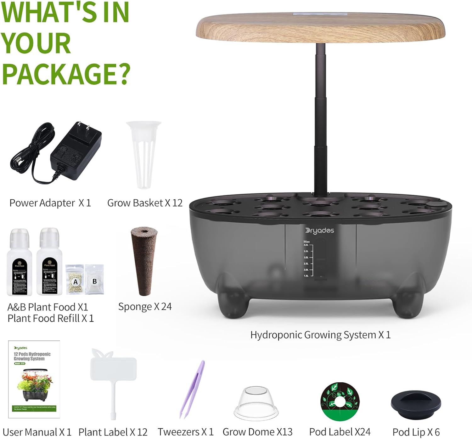 - 12-Pod Indoor Garden Kit: The Dryades Z237 includes 12 pods, making it perfect for growing a variety of herbs, vegetables, or flowers. Its compact design fits seamlessly into any indoor space, offering a modern solution for indoor gardening.