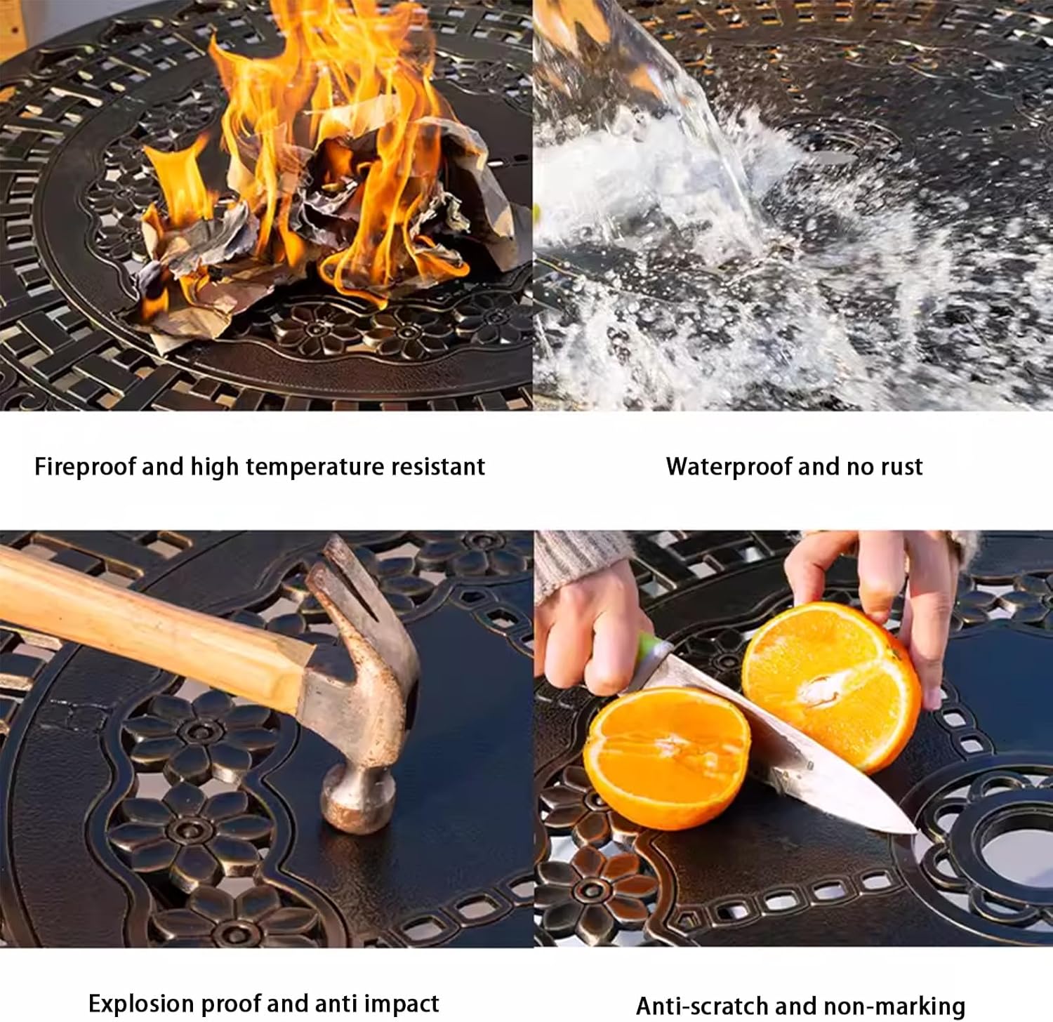 - 【Constructed of cast aluminum】Durability cast aluminum frame on this square round patio table is powder coated to make it rust resistant and to last season after season the finish is fade, waterproof, sunproof and corrosion resistant wear and scratch resistant