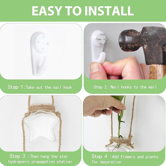 - Water Propagation Jars:The Window Propagation Station is perfect for gardening enthusiasts and is a great gift for nature lovers during the holidays. The mini vases for centerpieces that serve as the central decoration can also be gardening gifts for women.Since the star hanging glass vase is assembled by hand, if you receive an unbalanced product, please try adjusting the twine to restore balance or position. If you have any other questions about the plant rooting jar, please contact us, we will be happy to help you.