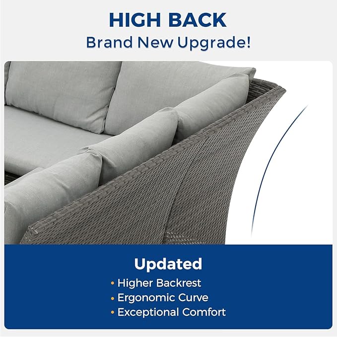 - 【Upgraded High Back Chair Design】- Our latest outdoor dining set showcases an upgraded high back that offers exceptional support through an elegant and ergonomic curve. This design enhances your outdoor seating experience, combining both style and comfort.