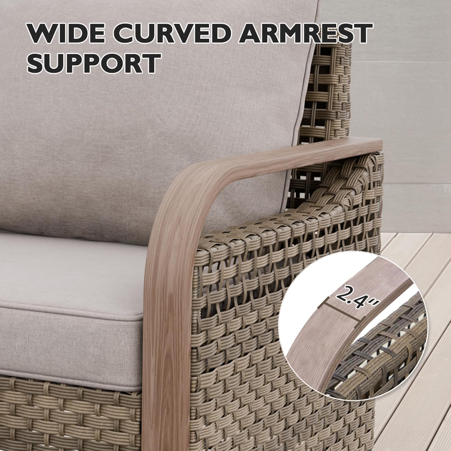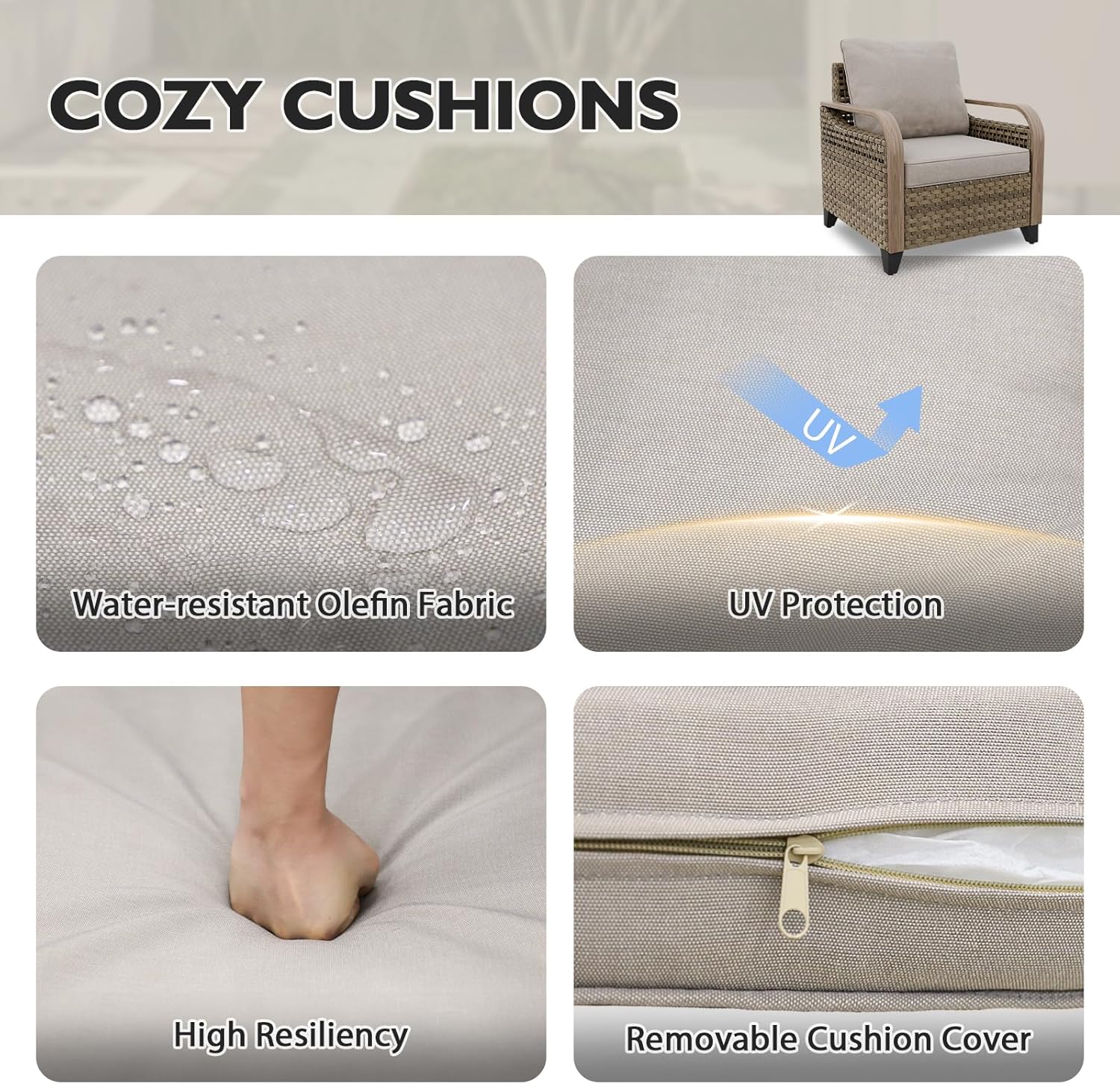 - GATHER, RELAX, ENJOY: This wicker armchair has generously widened seats and plush 5-inch back cushions for ultimate comfort. Designed for outdoor living, it's made with UV protection and weather resistance materials, making this furniture the ideal choice for stylish, worry-free lounging.