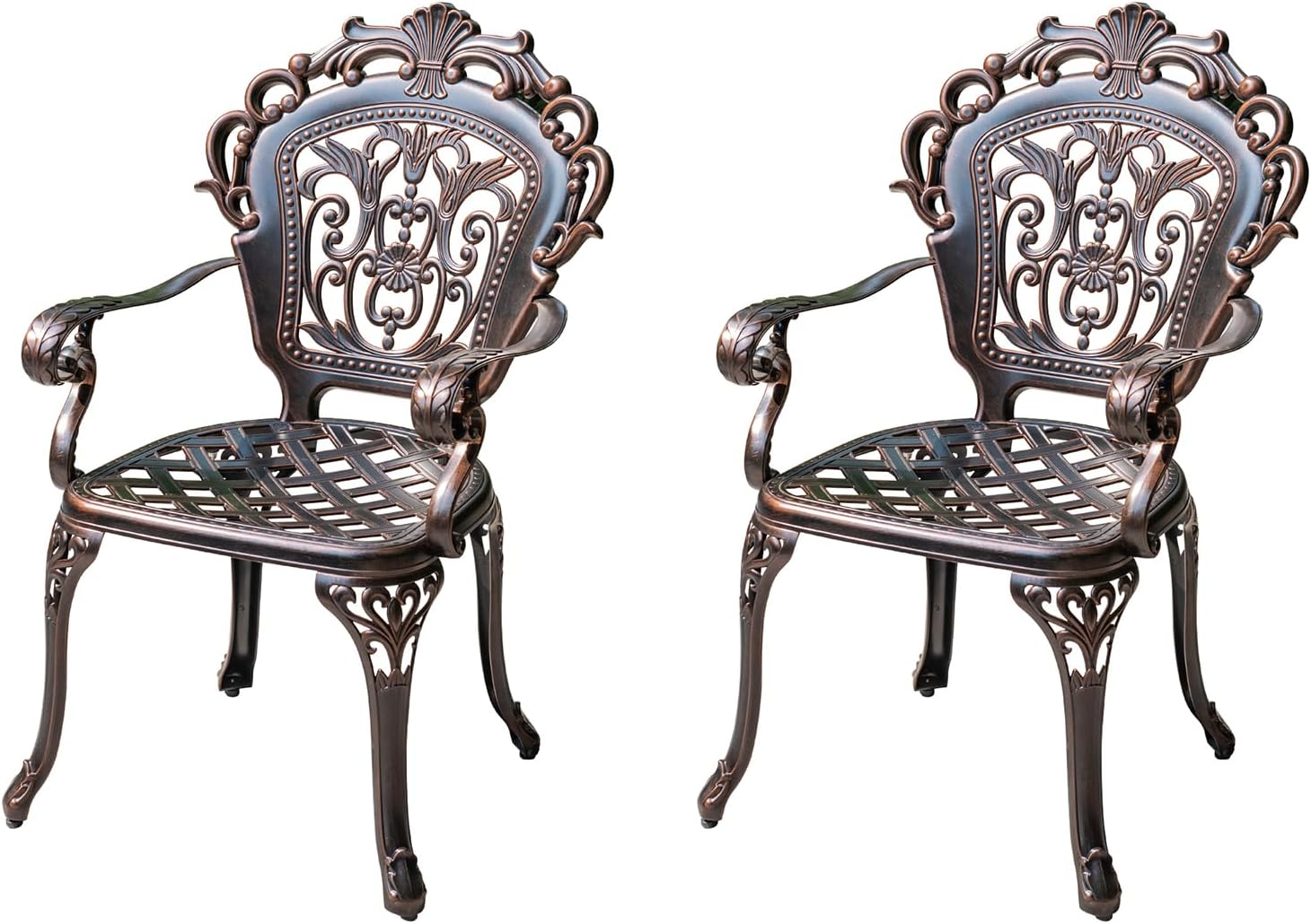 Outdoor Dining Chair Cast Aluminum Patio Chairs Set of 2 All-Weather Patio Dining Chair with Adjustable Feet for Backyard Garden (C-Style Finland Chair)