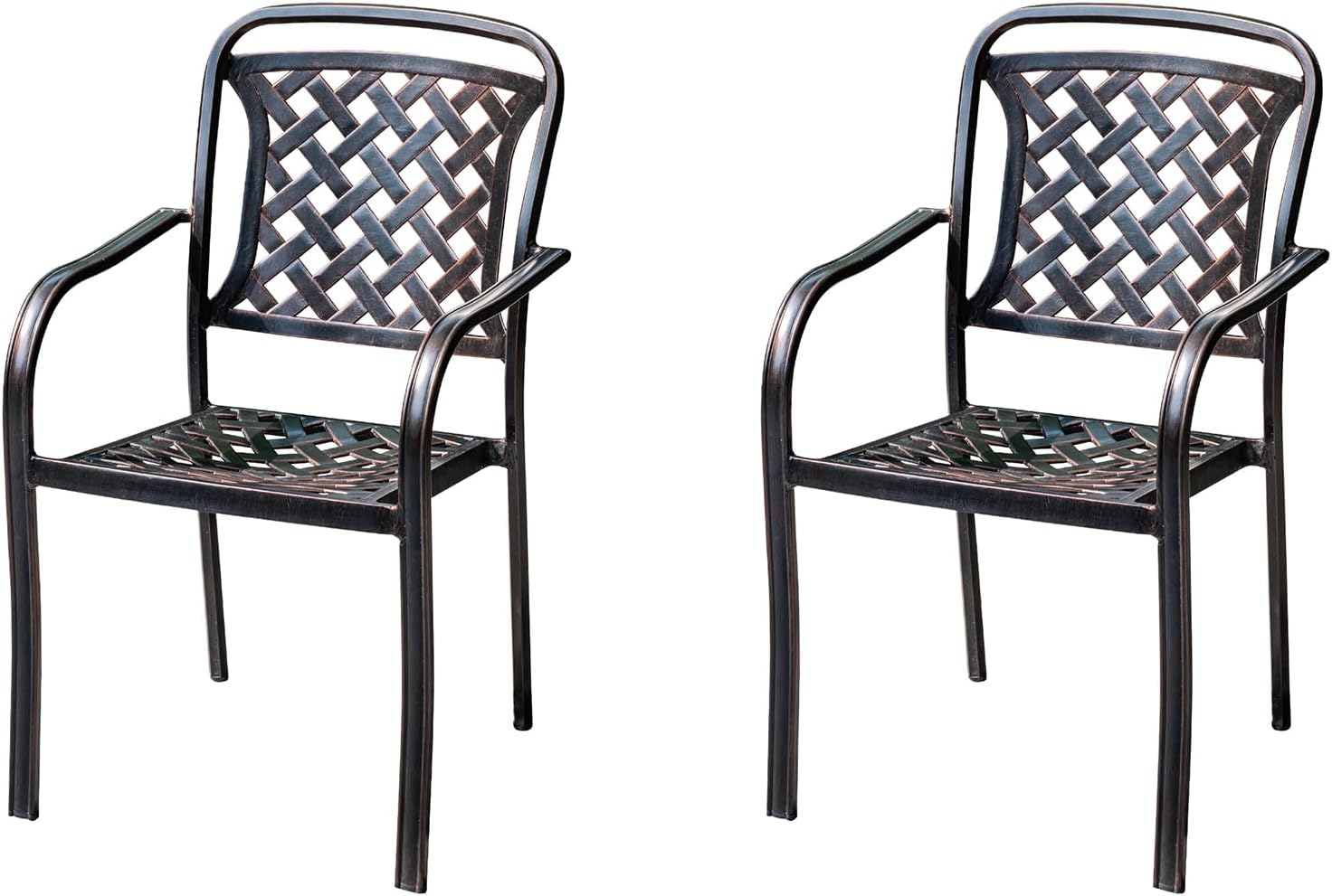 Outdoor Dining Chair Cast Aluminum Patio Chairs Set of 2 All-Weather Patio Dining Chair with Adjustable Feet for Backyard Garden (Flange Chair)