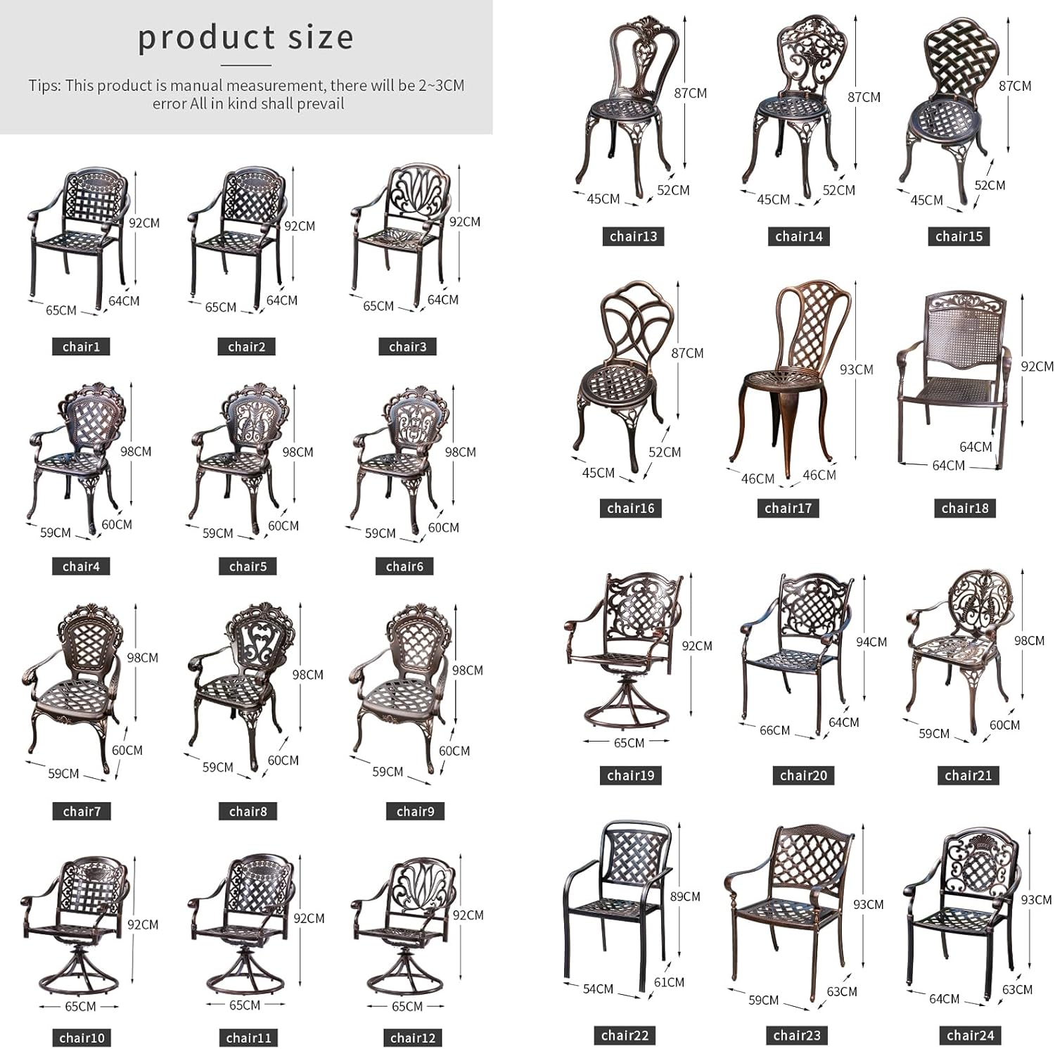 - All weather materials: Made of sturdy cast aluminum with a water-resistant and fade-proof finish. Our patio benches bistro chairs is durability and sunproof, these all-weather features will allow you to use the chairs for a long time