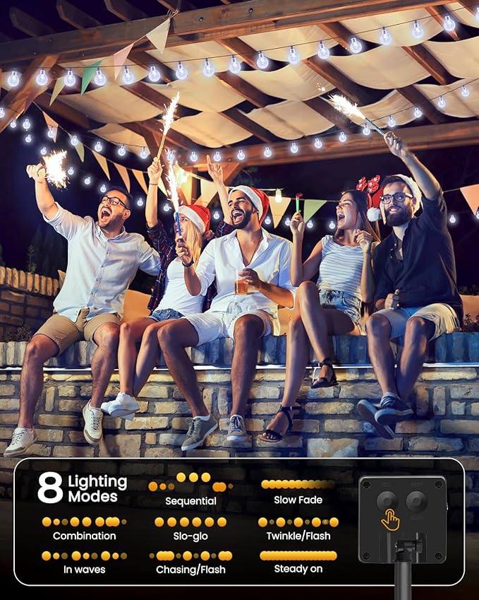- 【IP65 Waterproof & Easy to Install】The outdoor string lights can withstand all kinds of weather, including rain and snow; No wiring, no electricity cost. Put on wall, window, door, floor, ceiling, grass, Christmas tree or building, adding perfect atmosphere for your home and garden.
