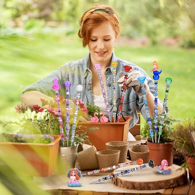 158 Pcs DIY Fairy Wand Garden Stakes Kit,Multiple Color Scheme European Beads Crystal Diamond Tops and 12 or 10 Inch Threaded Rods,Stainless Steel Stakes with Diamond Toppe (Sun)