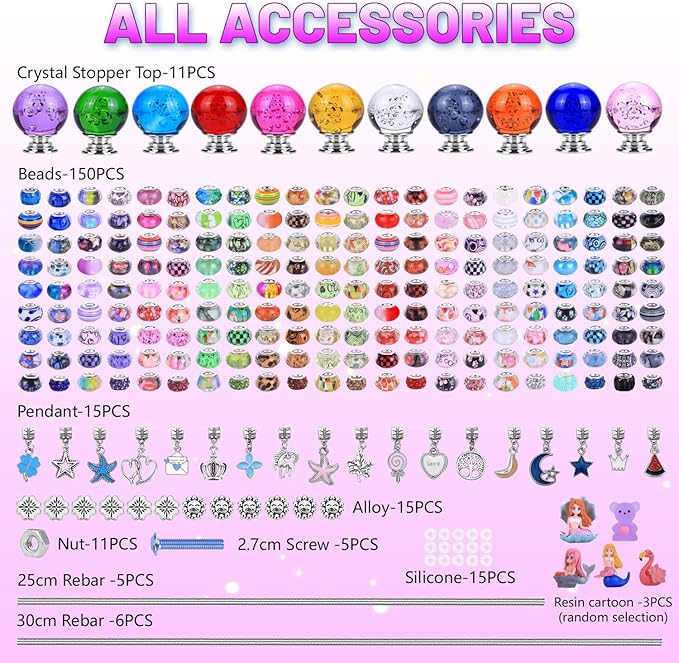 AIPRIDY 238 Pcs DIY Fairy Wand Garden Stakes Kit,Multiple Color Scheme European Beads Crystal Diamond Tops and 12 or 10 Inch Threaded Rods,Stainless Steel Stakes with Diamond Toppe(Inner Bubble)