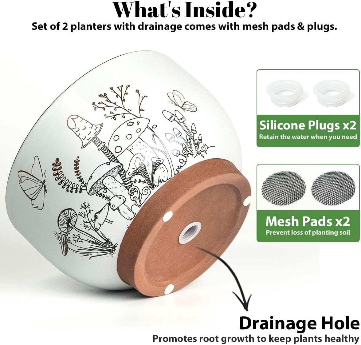 YBX 8 Inch & 6 Inch Terracotta Pots, Plant Pots, Flower Pots for Indoor Plants with Drainage, Planters with Mushroom Accent for Indoor Plants (Cottage)