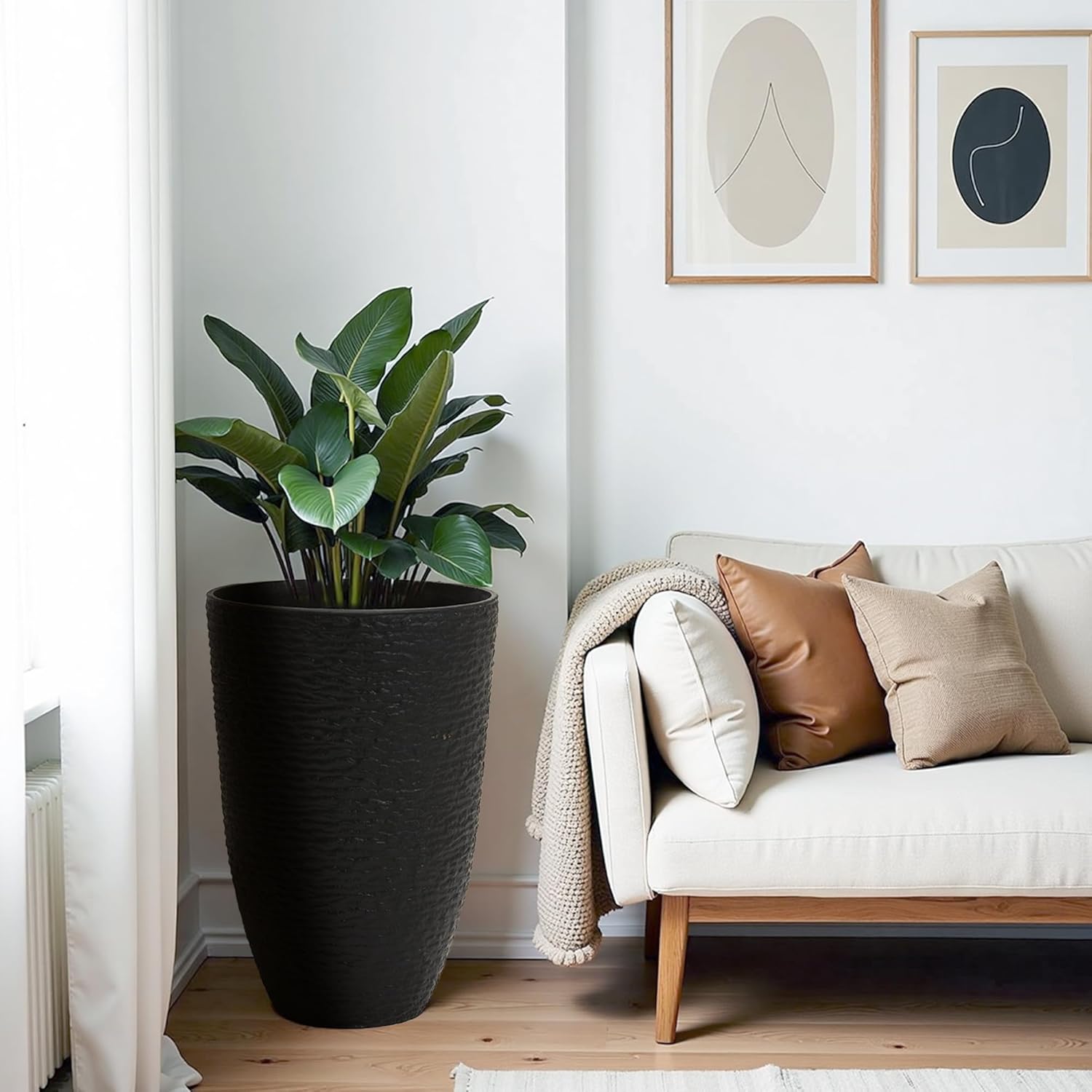 - Spacious Design: Each planter measures 21 inches in height and 14 inches in diameter, providing ample space for plants and trees; Made from high-quality plastic, 85% recyclable PP +15% stone powder, these planters are built to withstand outdoor conditions