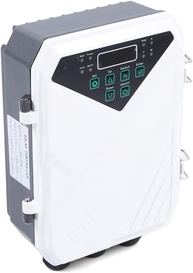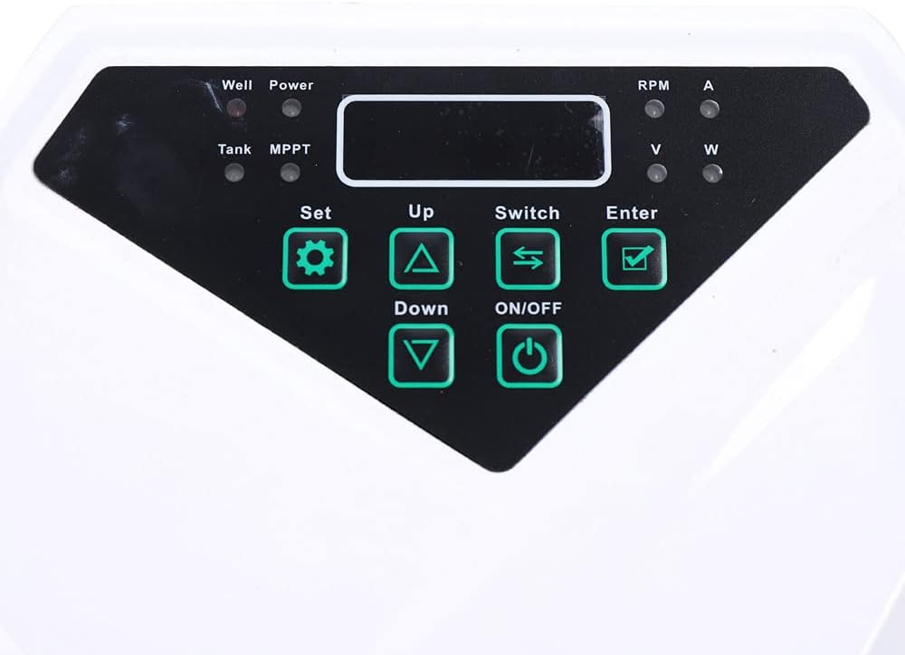 - High-Quality Controller: The solar water pump controller utilizing MPPT technology to ensure maximum flow is delivered under all light conditions. At the same time, it can also charge the battery and store excess solar energy in the battery. It comes with LED lights and LCD display so you can check the working status of the pump.