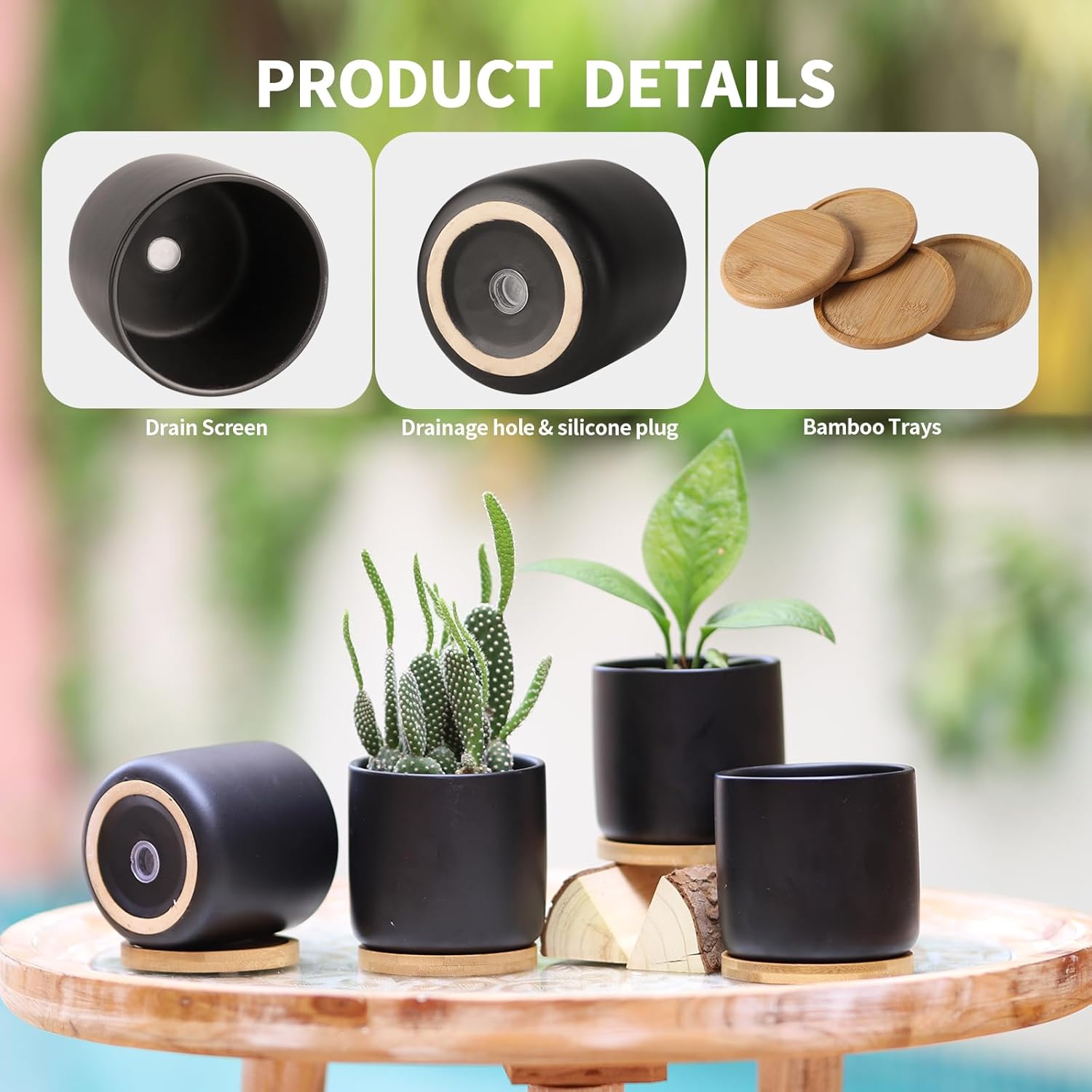 - Saucer: The bamboo trays works great for collecting excess water and soil spillage. You also could use the pot without these bamboo saucers if you place the flower pots outdoor.