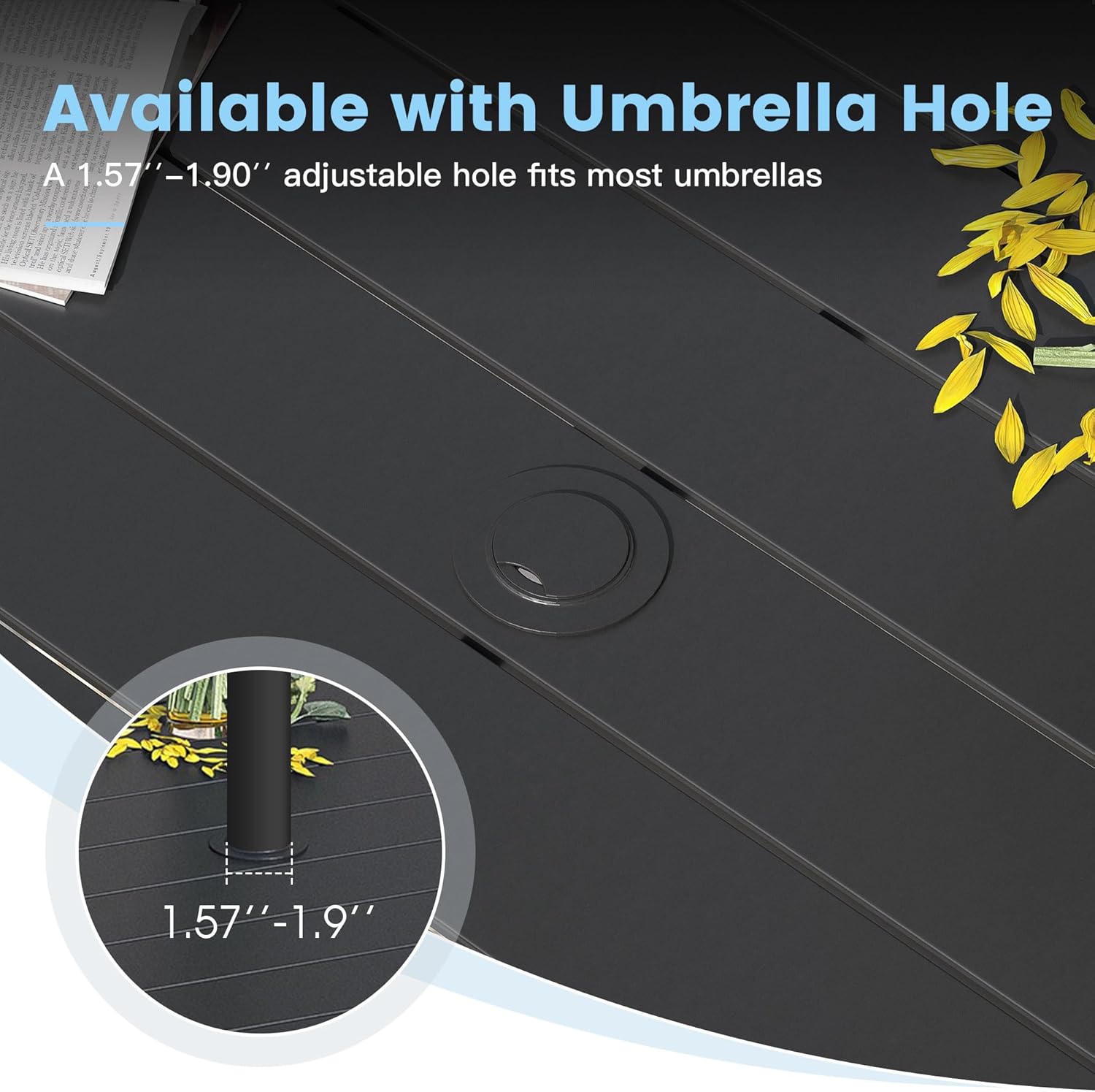 - 【Adjustable Umbrell Hole Design】Equipped with a 1.57"-1.90" adjustable umbrella hole, fits most umbrellas and prevents you from sun and rain