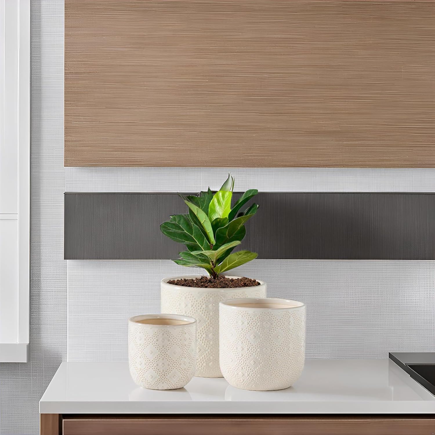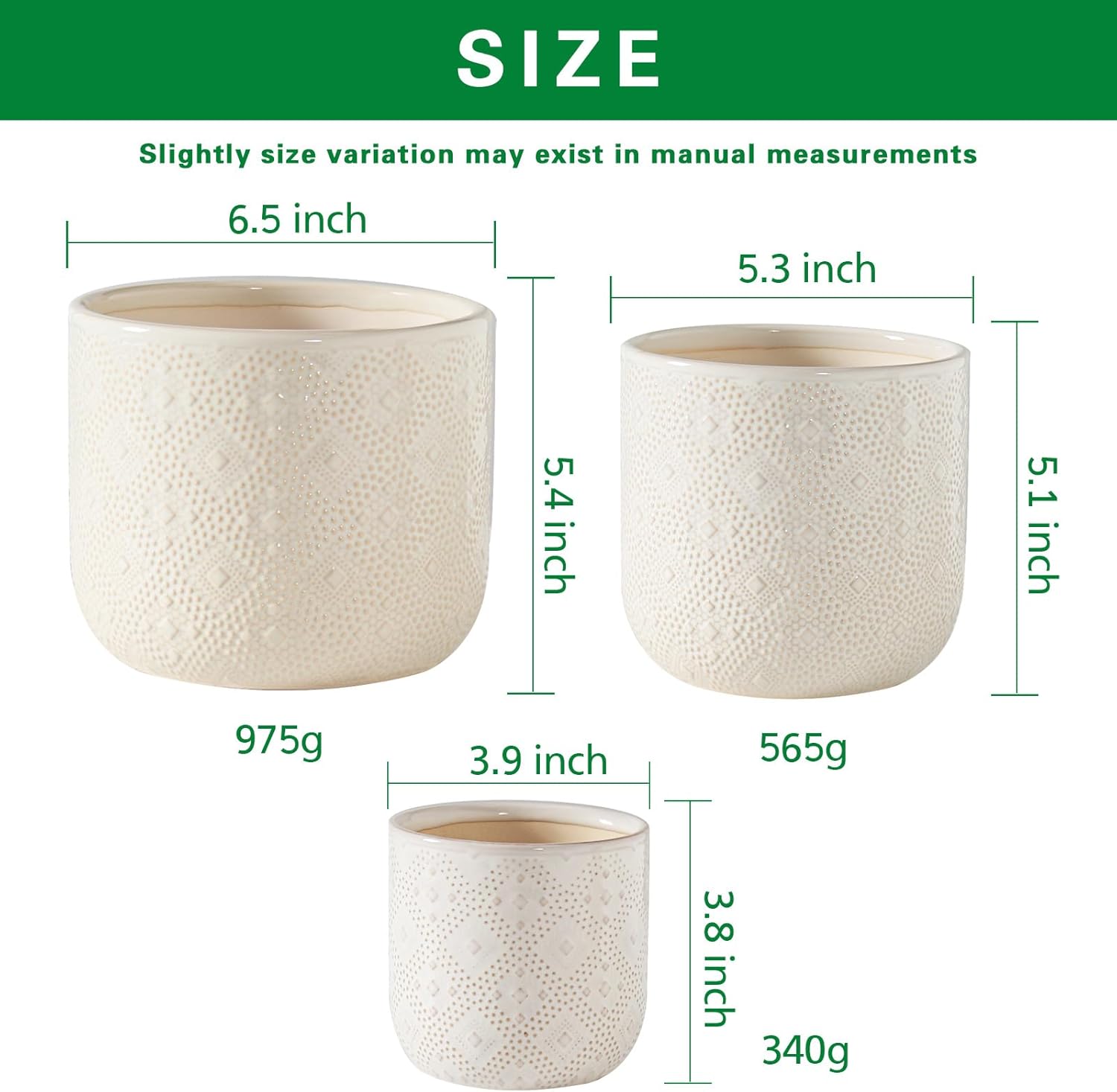 Docrin Ceramic Plant Pots Indoor:6.5+5.3+4 Inch Planters with Drainage Holes for Home /Office - Set of 3 / White
