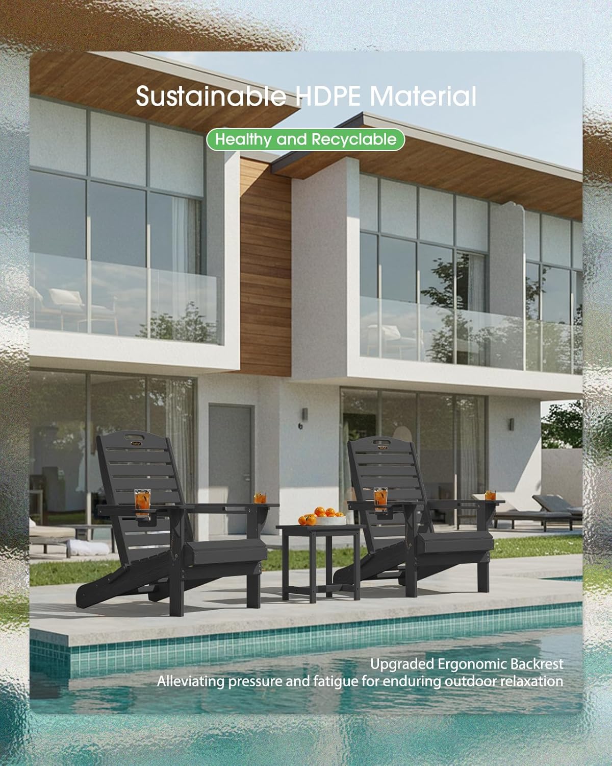 - Enhanced Backrest Design: We’ve upgraded our adirondack chairs to a one-piece backrest that outperforms traditional straight designs. This innovative shape contours perfectly to your back, alleviating spinal pressure and fatigue for enduring comfort