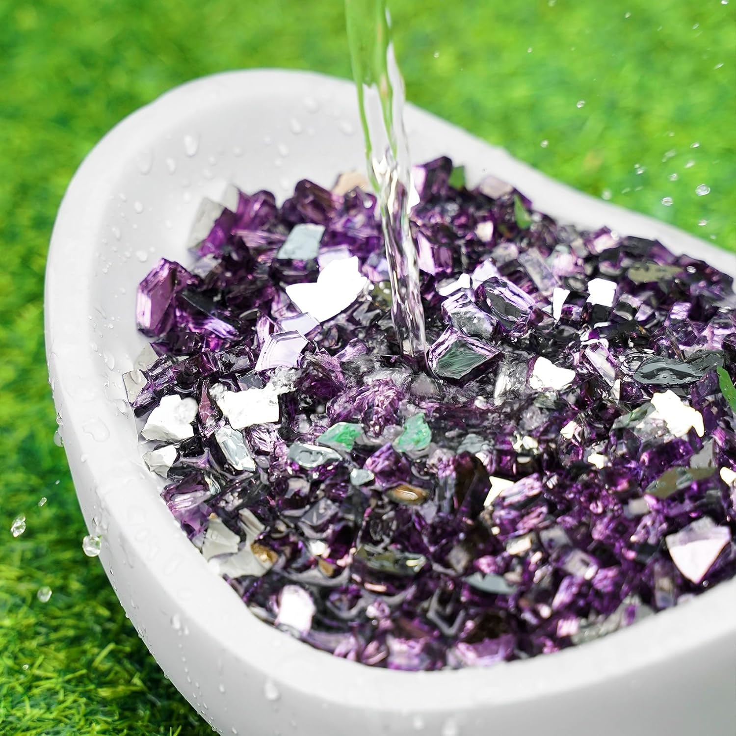 - 【Upgrade Your Indoor & Outdoor】- The Reflective grape fire glass is a plus for any natural gas or propane fire pit and fireplace to replace the boring Lava Rocks & Gas Logs. They are also the perfect decoration for garden, plant pots, aquarium, fish tank and other places. It also does a wonderful job to cover the naked ground or floor, effectively hiding the unseemly pipes and tubes.