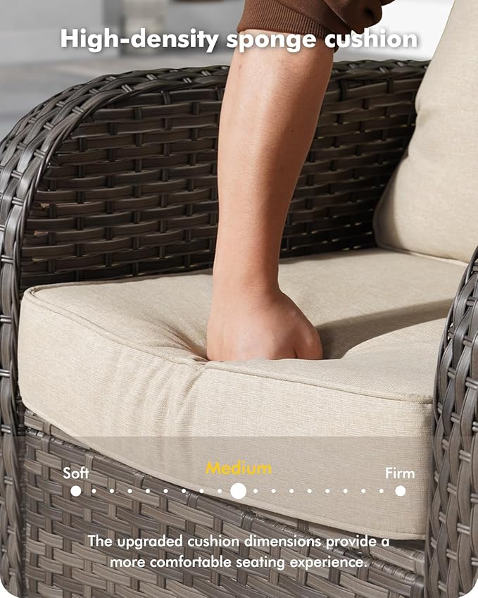 - Non-Fading Fabric:3-Year-Non-Fading,made with high-density foam that is soft and supportive, and covered with a breathable fabric that is easy to clean and maintain. The cushion covers are also water resistance, stain-resistant, ensuring they remain in excellent condition in all weather conditions