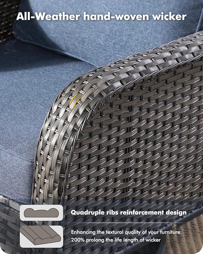 - 360°Swivel & Deep Seating: This sophisticated deep seating outdoor wicker furniture design is the one for you. Rest your arms on this furniture, lean back, and you’re done for the day. Comfort and elegance you can depend on.