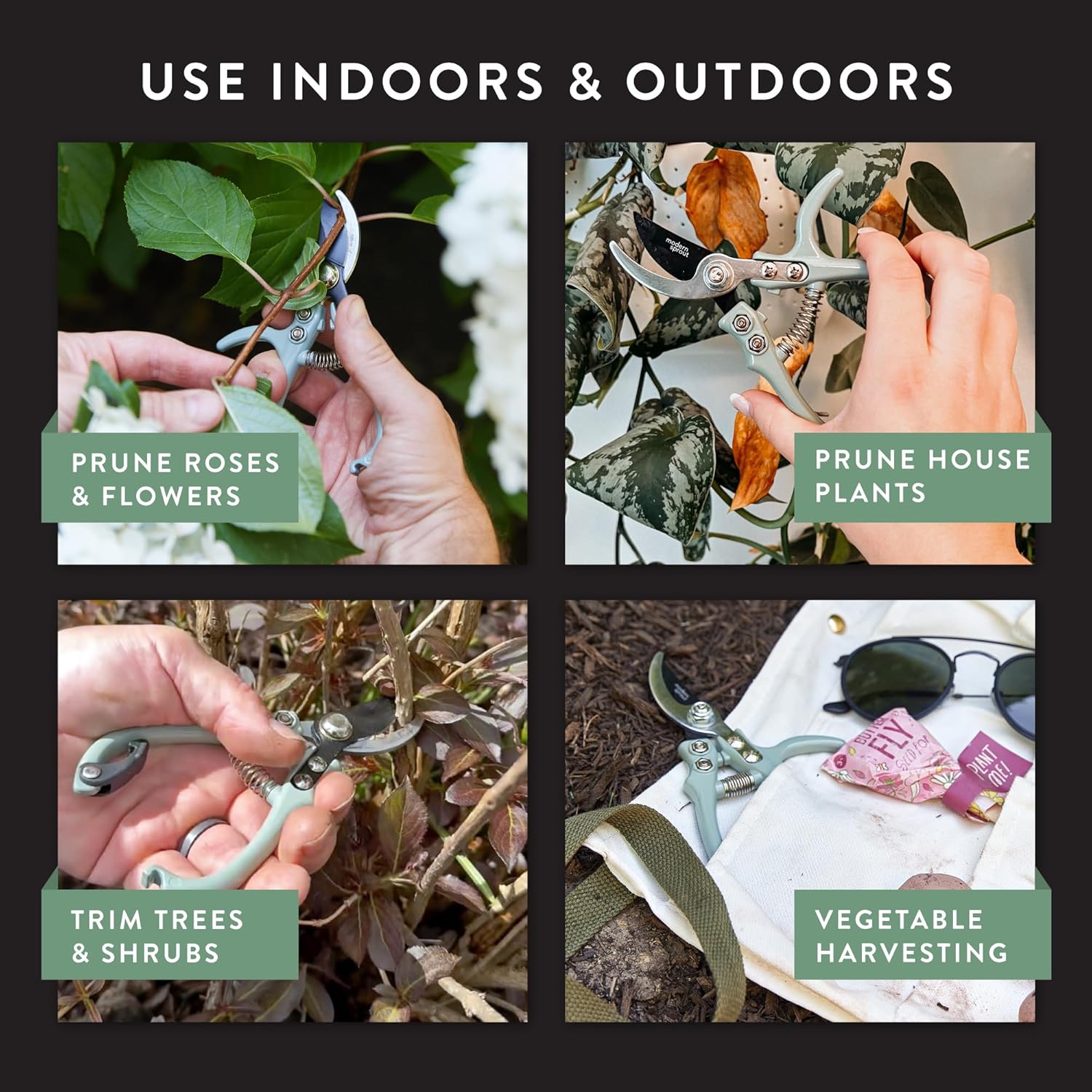 - Designed for Everyday Plant Care: These garden hand pruners offer reliable performance for everyday plant maintenance; whether used as plant pruners - their fine-tipped, rust-resistant, chrome-plated sharp carbon steel bypass blades deliver clean, precise cuts; perfect for trimming blooms, hedges and maintaining balcony pots or kitchen gardens; the compact size makes them ideal for tight spaces and flexible stems
