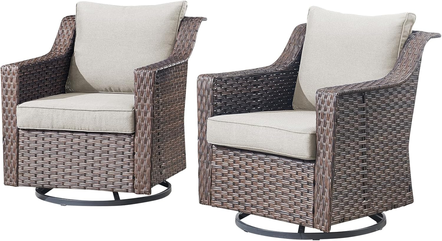 Outdoor Patio Wicker Swivel Chairs - Set of 2 Outside Resin Rattan Rocker Glider Gliding Chair Rocking Armchairs for Front Porch Balcony Backyard Yard Deck Poolside Apartment – Brown/Beige