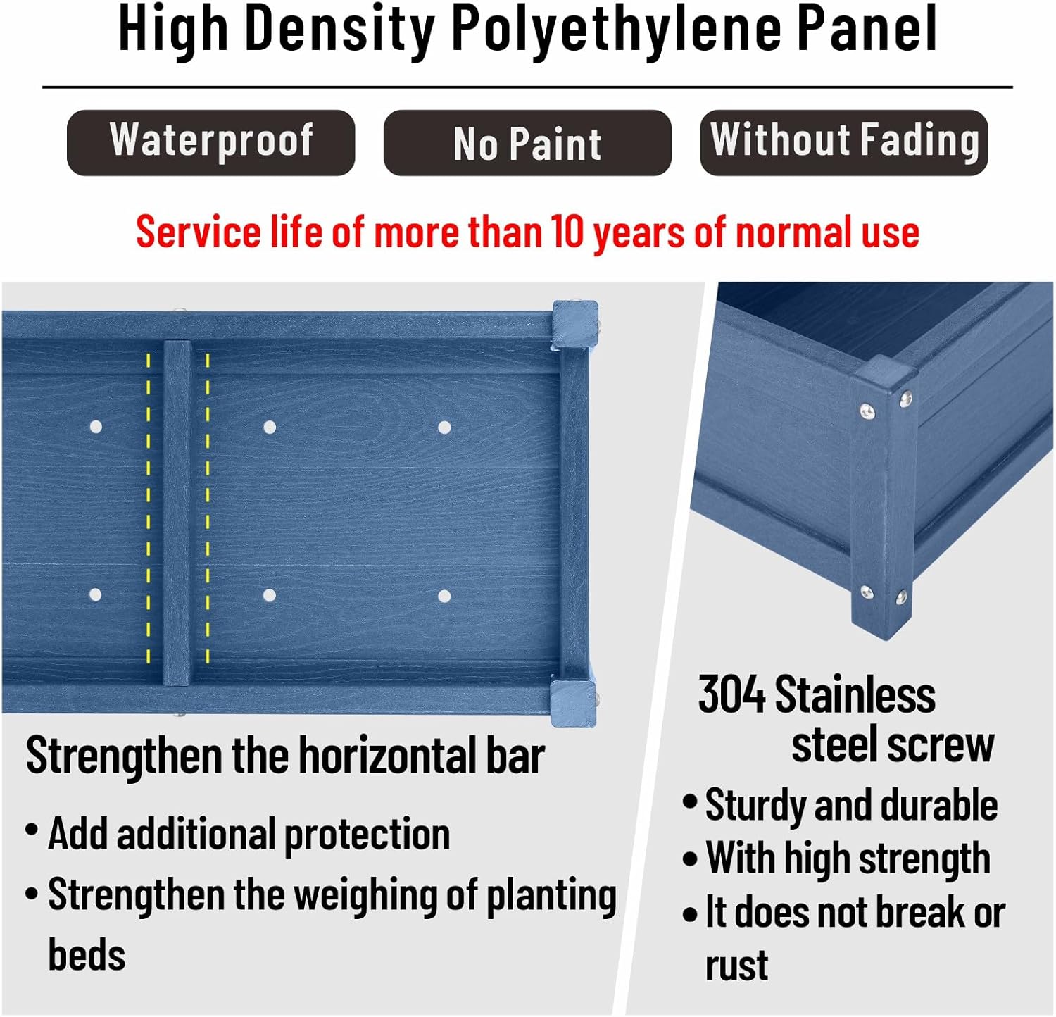 - Safety:Raised planter box outdoor made from HDPE,with no water or oil-based coatings, ensuring that your fruits, vegetables, plants, and herbs grow safely