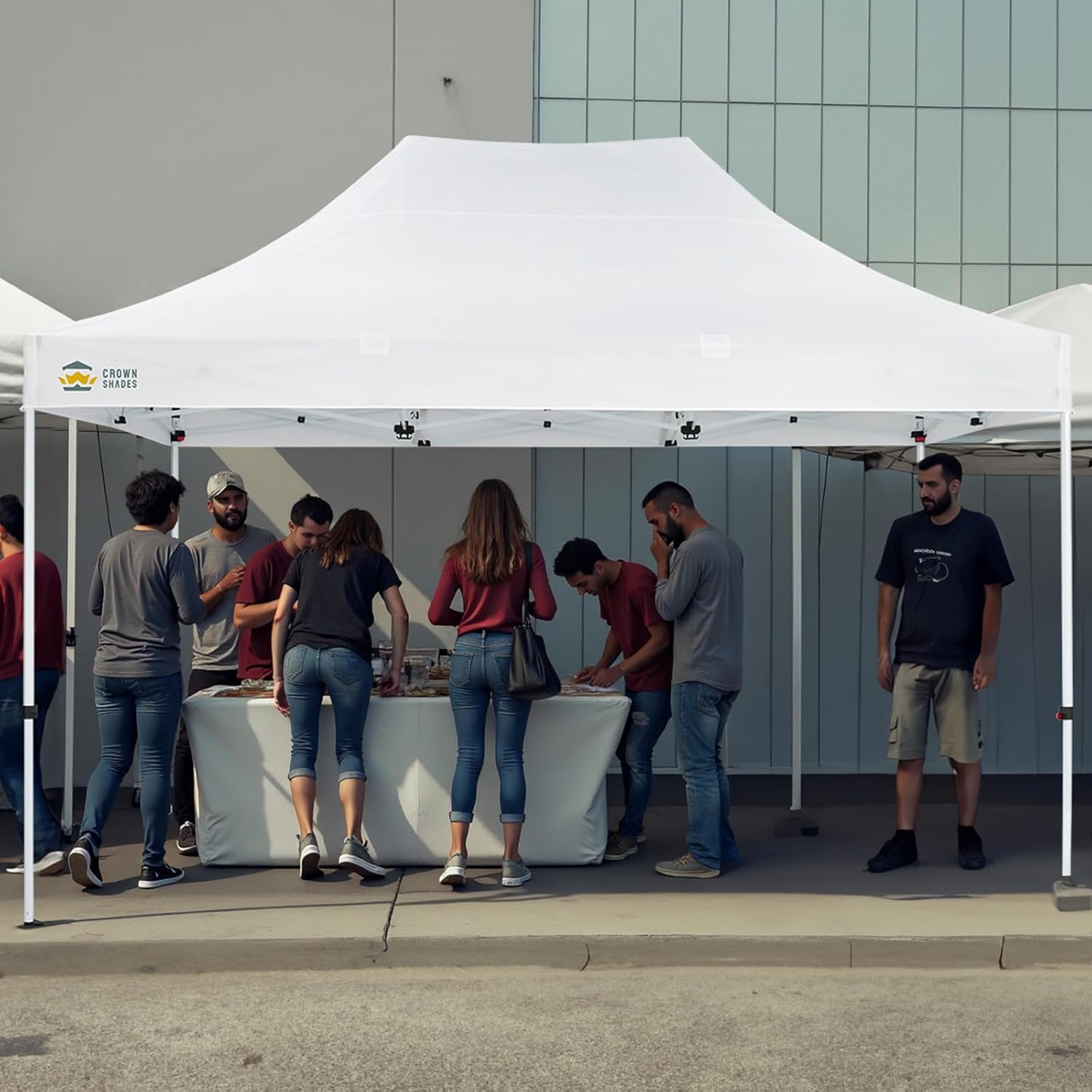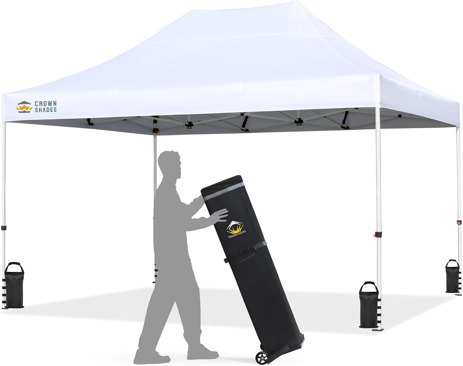 CROWN SHADES 10x15 Pop Up Canopy Tent, Thicken Frame Commercial Heavy Duty Tent, 8 Stakes & 4 Sandbags & 4 Ropes, Outdoor Canopies for Events, Parties,White