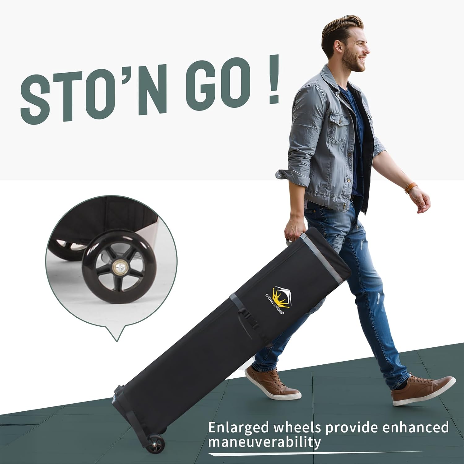 - CONVENIENT ROLLER BAG: This 10x15 pop-up canopy comes with a bag that has 4-inch wheels for easy mobility, featuring a spacious opening and a sturdy pull handle. The convenient pocket design can store 4 stakes and 4 ropes, making this canopy an ideal choice for any outdoor event.