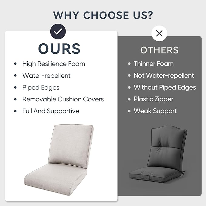 - COMFORTABLE BUT FIRM: These cushions are customized for outdoor patio furniture chairs and sofa set, so they're not as soft as indoor pillows yet more long-lasting and practical