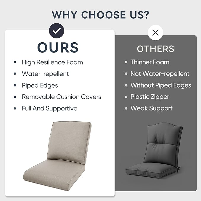 - COMFORTABLE BUT FIRM: These cushions are customized for outdoor patio furniture chairs and sofa set, so they're not as soft as indoor pillows yet more long-lasting and practical