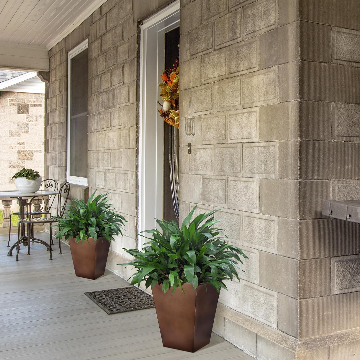 KOL 18''H. Metal Planter with Drainage Hole, Set of 2, Galvanized Steel Planter Pots for Indoor & Outdoor Use, Decorative Flower Plant Pots for Front Porch, Patio, Deck - Rust Color