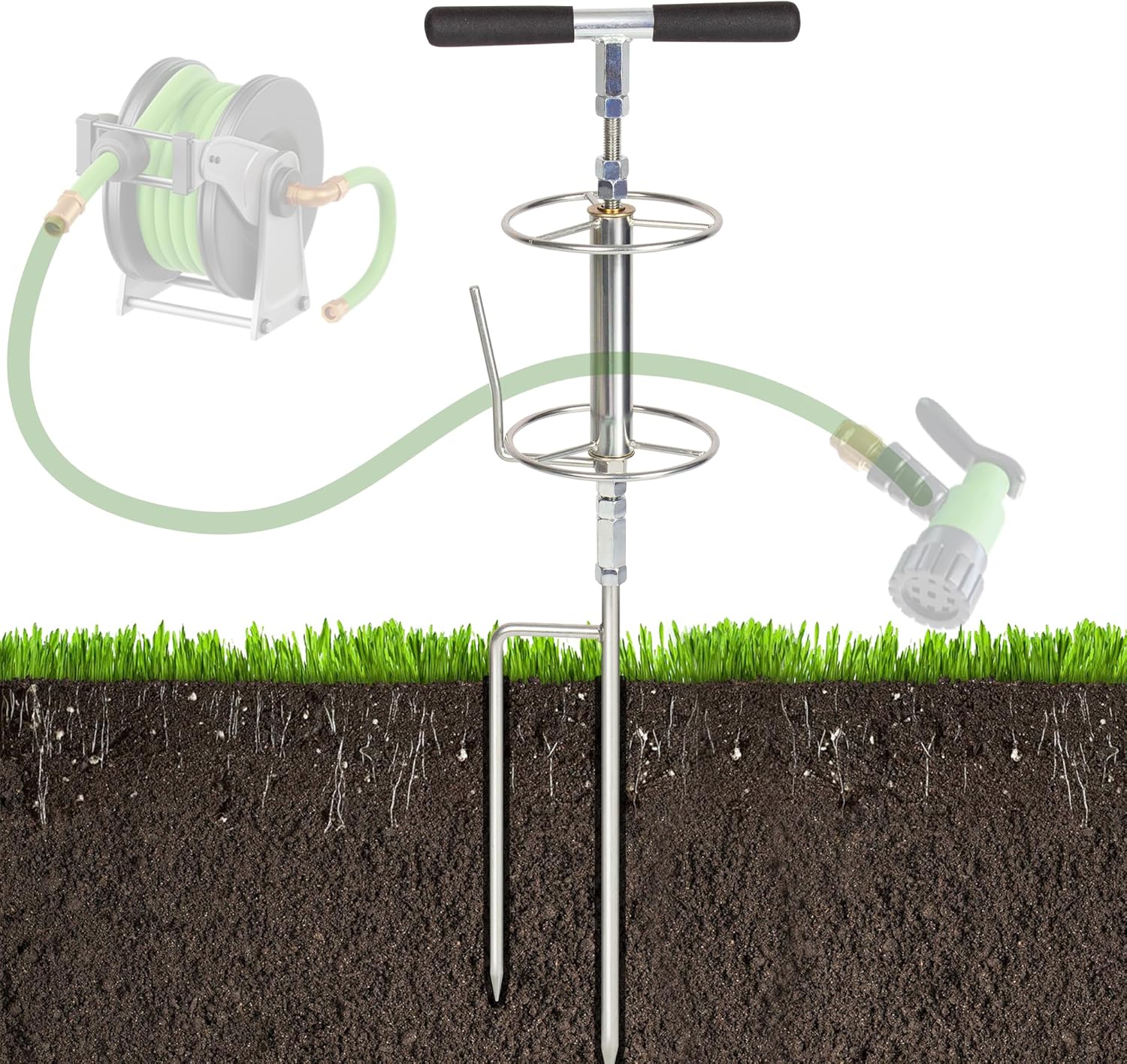 - Easy to Install: One of the key advantages of this hose holder is that it does not require any complex mounting onto the wall. Instead, for a hassle-free setup, all you need to do is simply step on the sturdy fixing points provided, which allows you to insert it securely into the ground with minimal effort and easily. Its placement can be tailored according to your specific requirements.