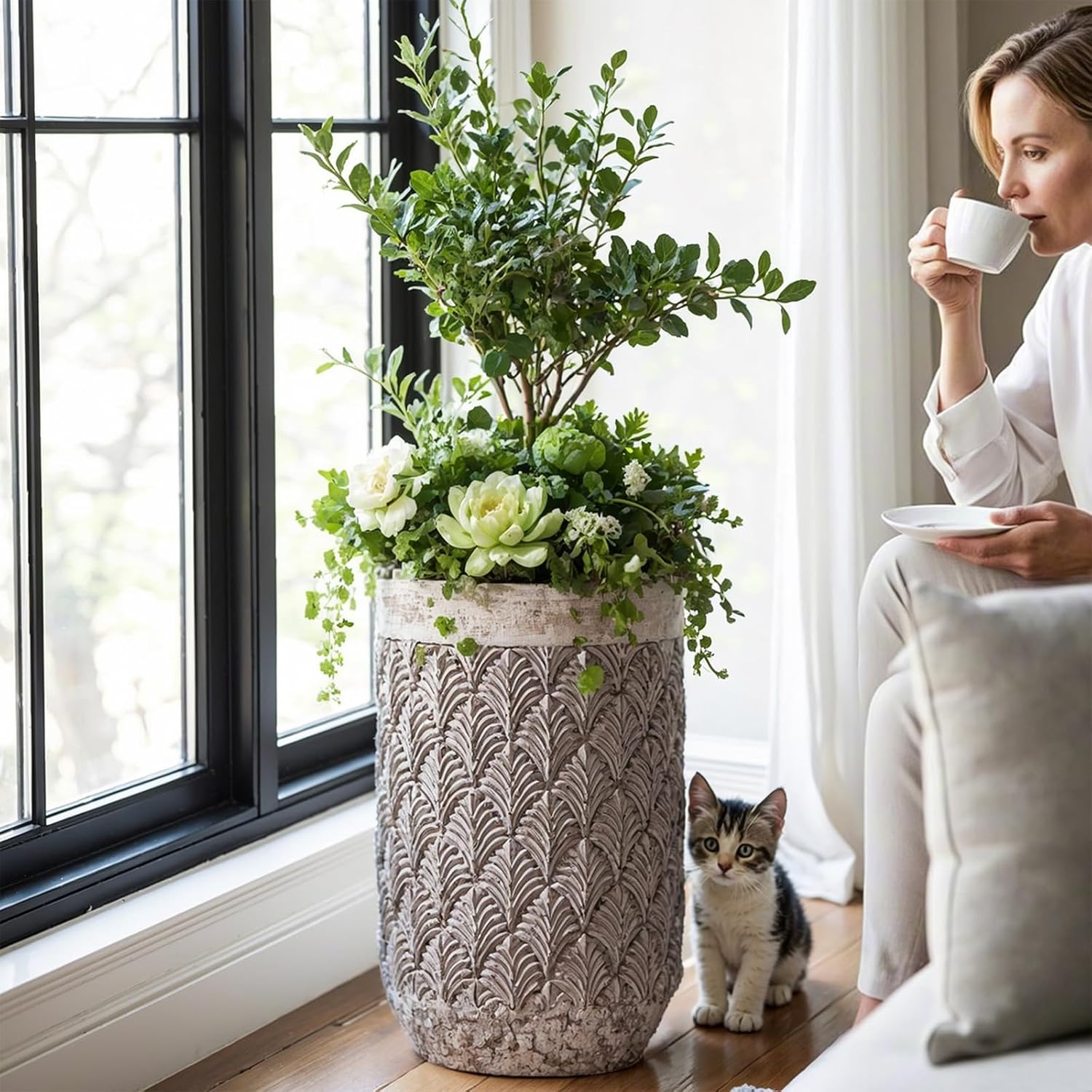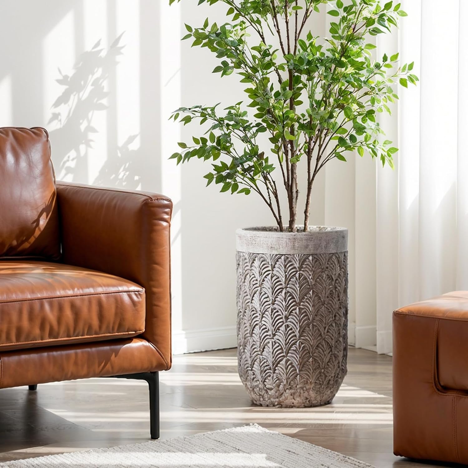 - [Better Material]:The planters are made of cement and fibreglass, which combines the strength of cement and the resilience of fibreglass, that is why the plant pots are not easily damaged.