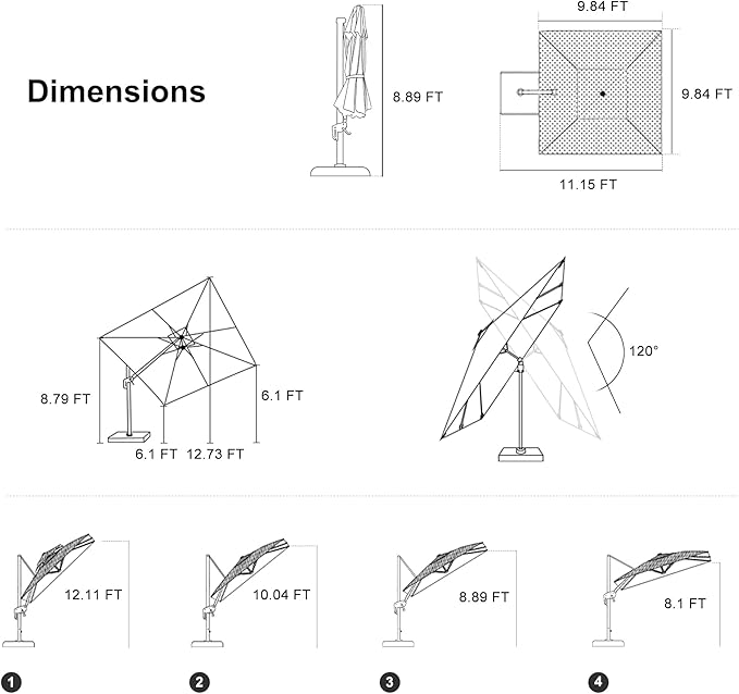 - Upgraded Swivel Function: The umbrella rotates 360°, the canopy tilts left and right, and has 7 adjustable positions to provide optimal shade from all angles, allowing you to enjoy a comfortable outdoor experience all day long.