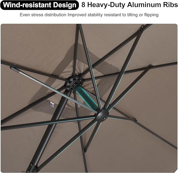- High-quality Aluminum:The rust-resistant, weatherproof all-aluminum frame is durable and bend-resistant, while eight heavy-duty ribs provide excellent stability and enhanced wind resistance.